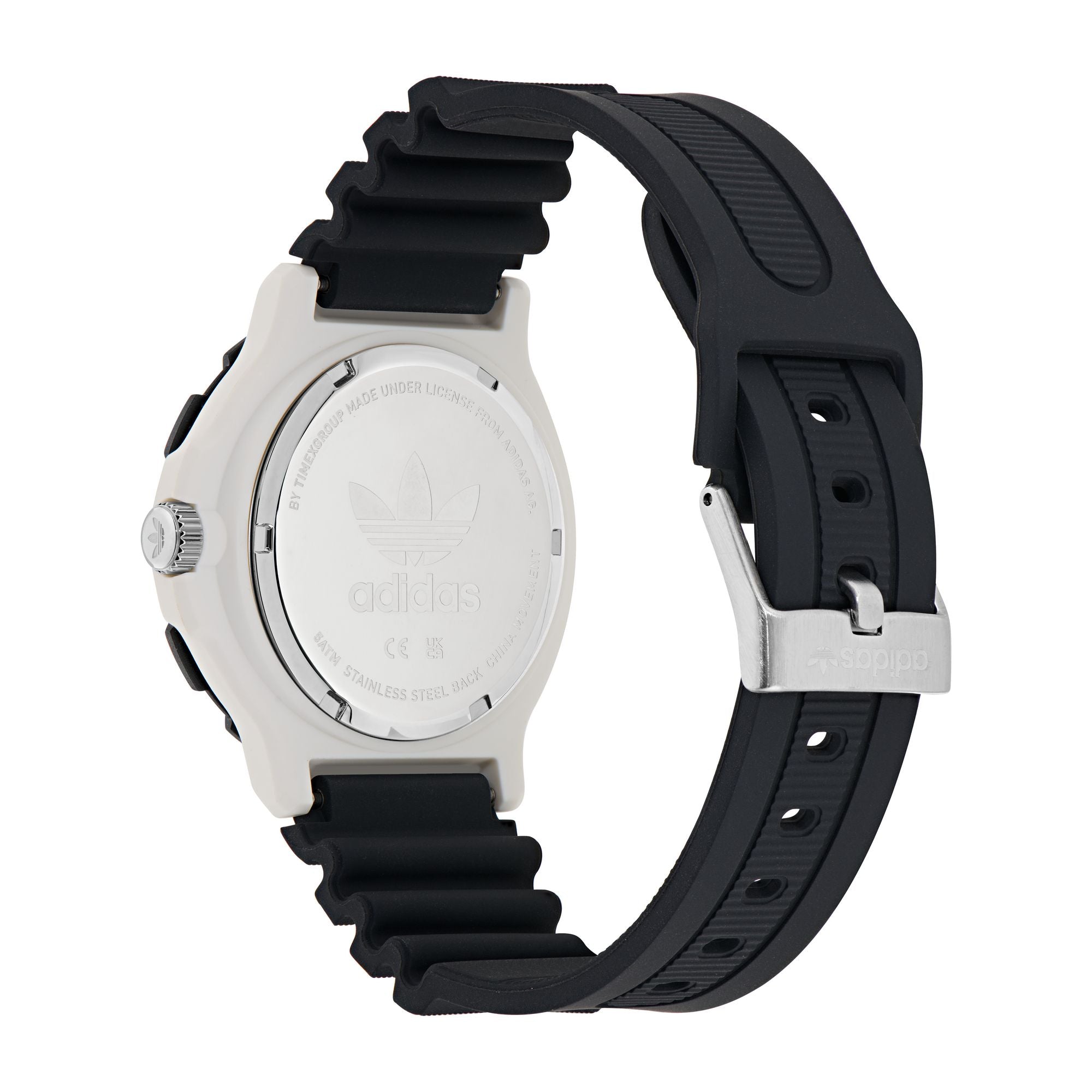 | Armband: | schwarzes Silikonarmband, Dornschließe Breite: ca. 20 mm Länge der Uhr: ca. 22 cm |