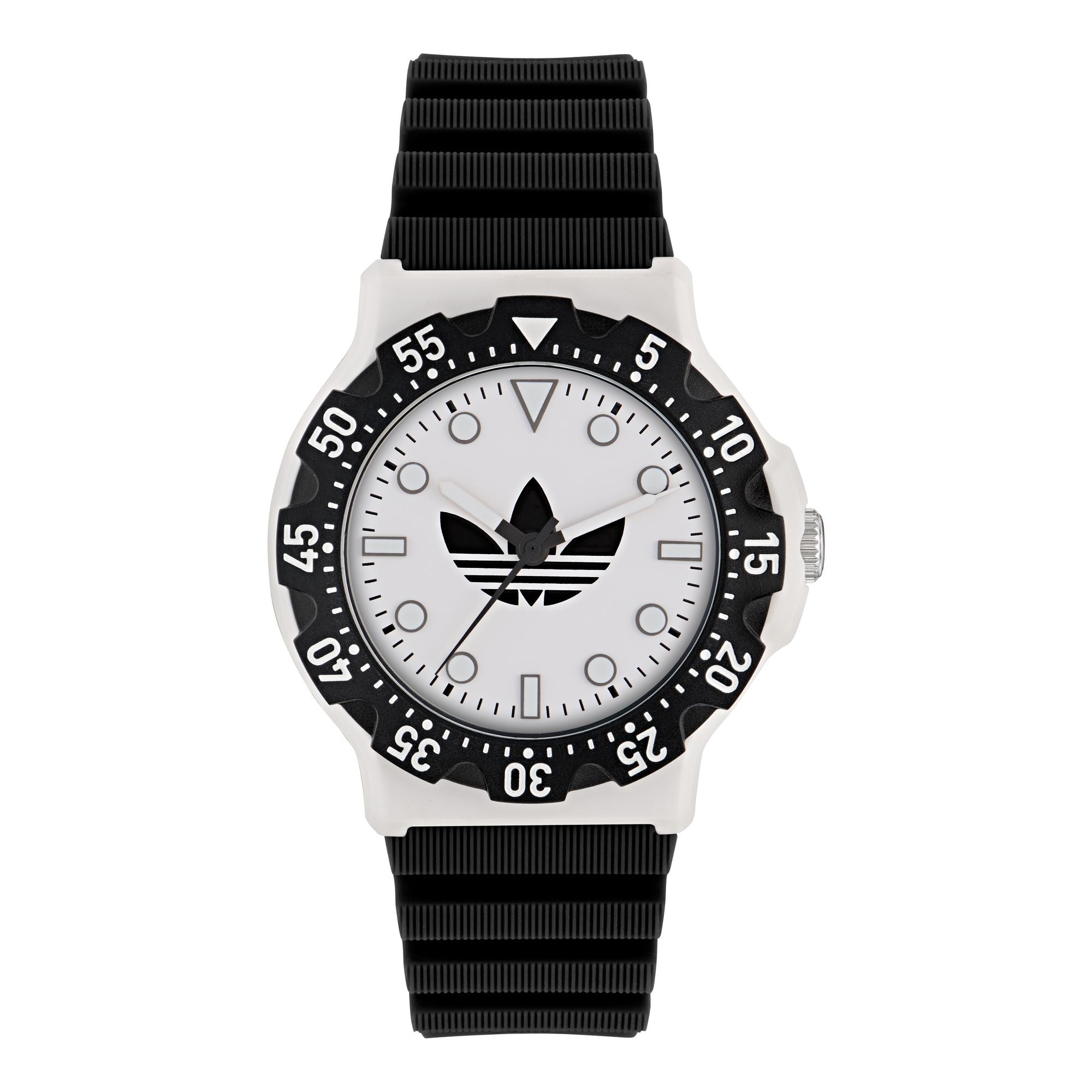 | Gehäuse: | Gehäuse aus Kunststoff (Resin) weiß, Lünette schwarz, Durchmesser ca. 40 mm (ohne Krone), Höhe: ca. 12 mm |