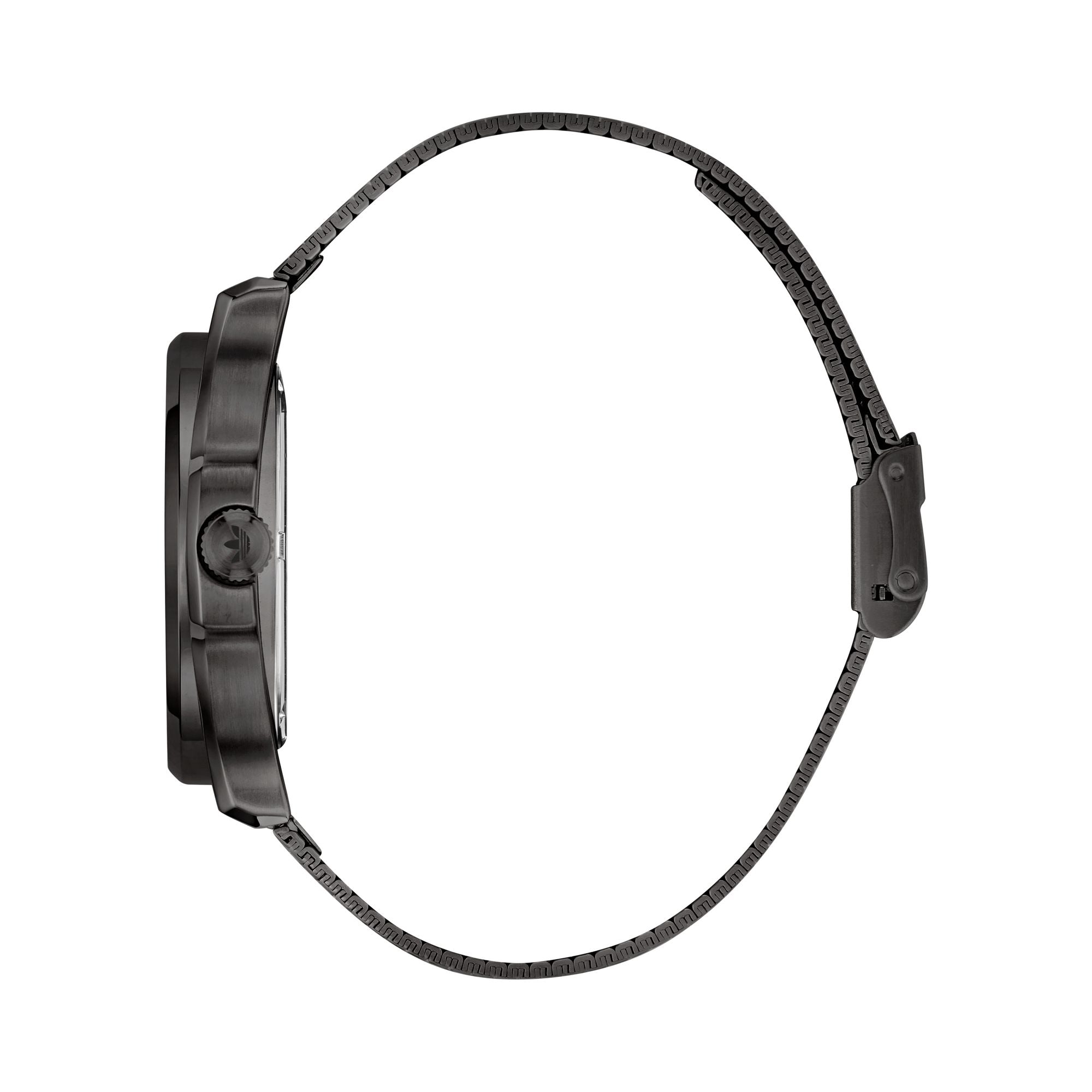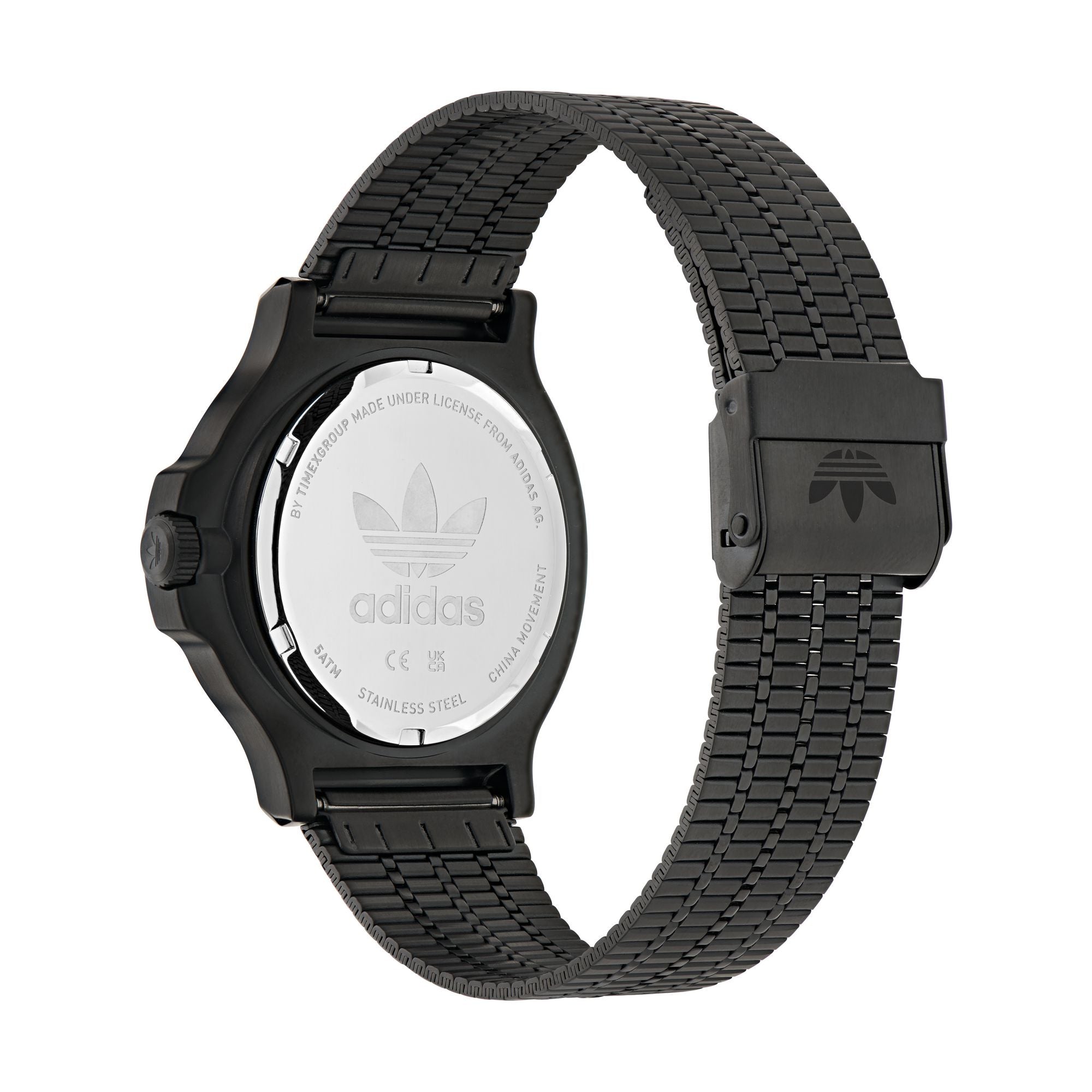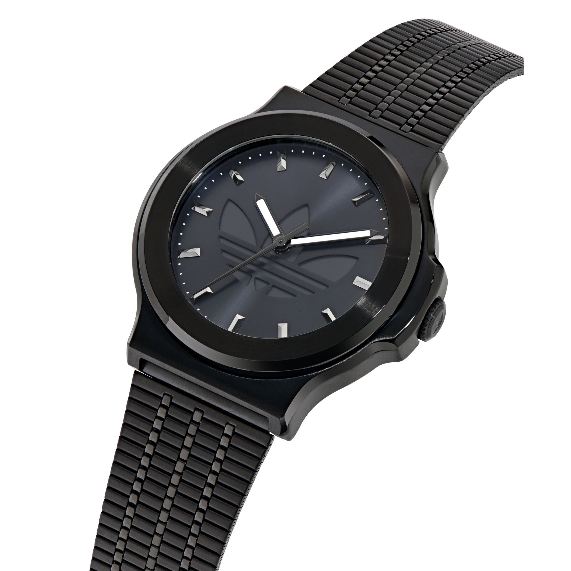 | Armband: | schwarzes Edelstahlarmband, Faltschließe Breite: ca. 20 mm Länge der Uhr: ca. 22 cm |