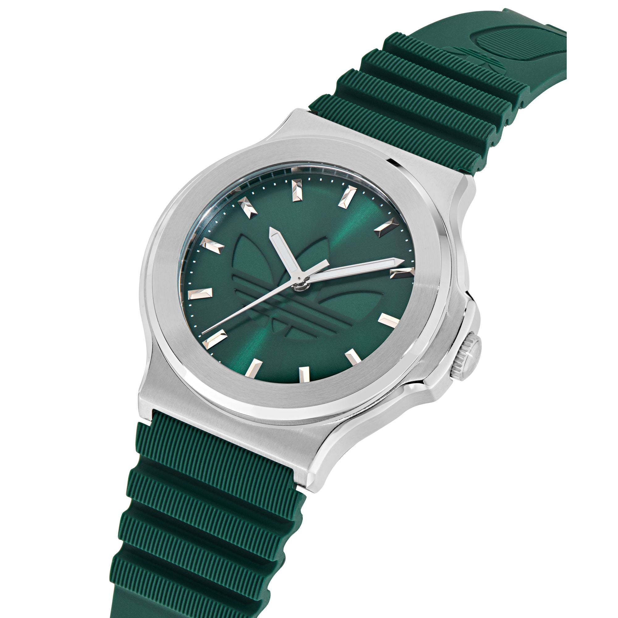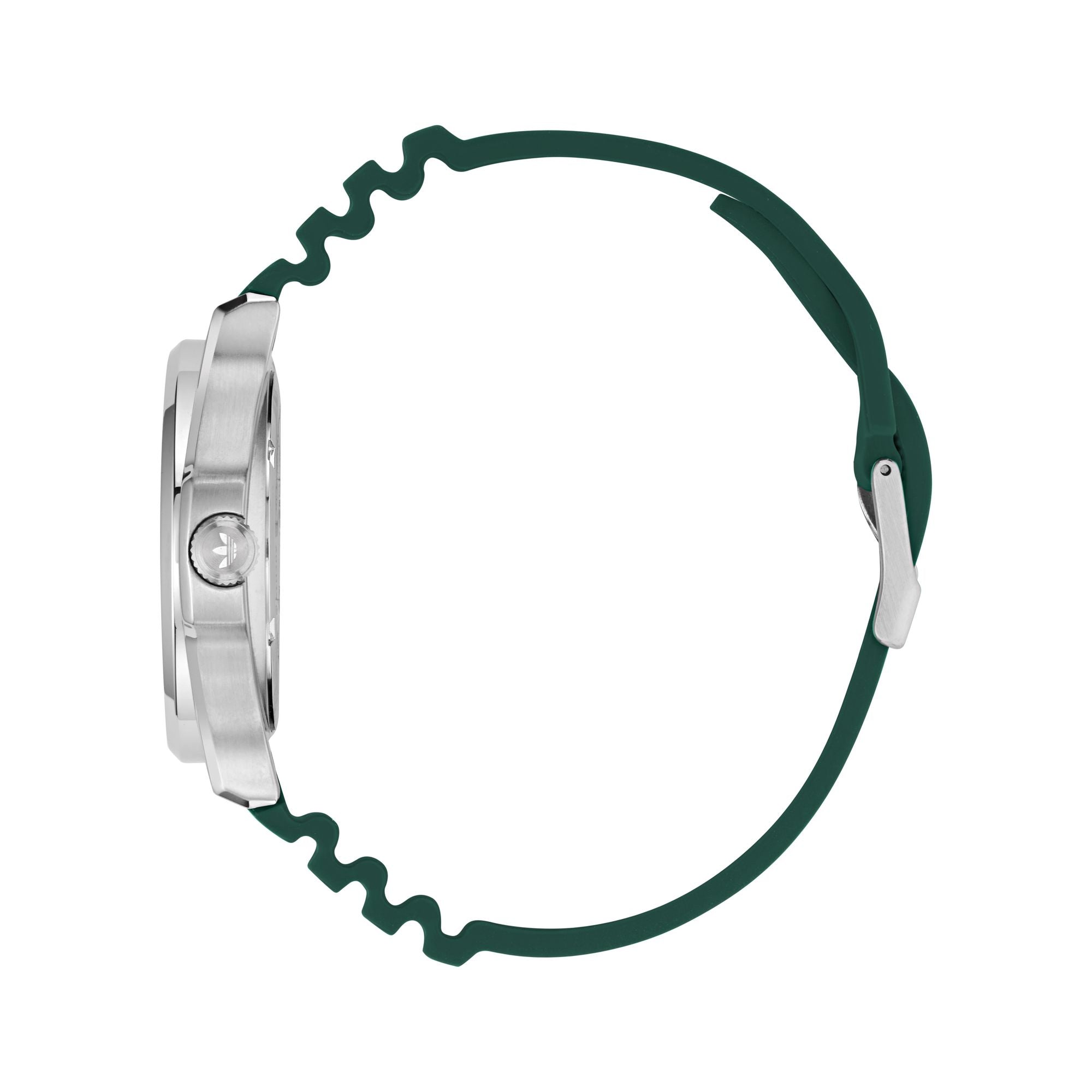 | Armband: | grünes Silikonarmband, Dornschließe Breite: ca. 20 mm Länge der Uhr: ca. 22 cm |
