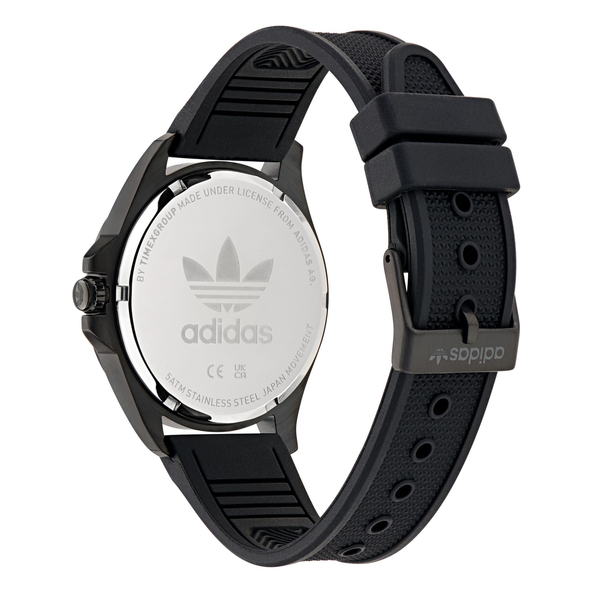 | Armband: | schwarzes Silikonarmband, Dornschließe Breite: ca. 19 mm Länge der Uhr: ca. 22 cm |