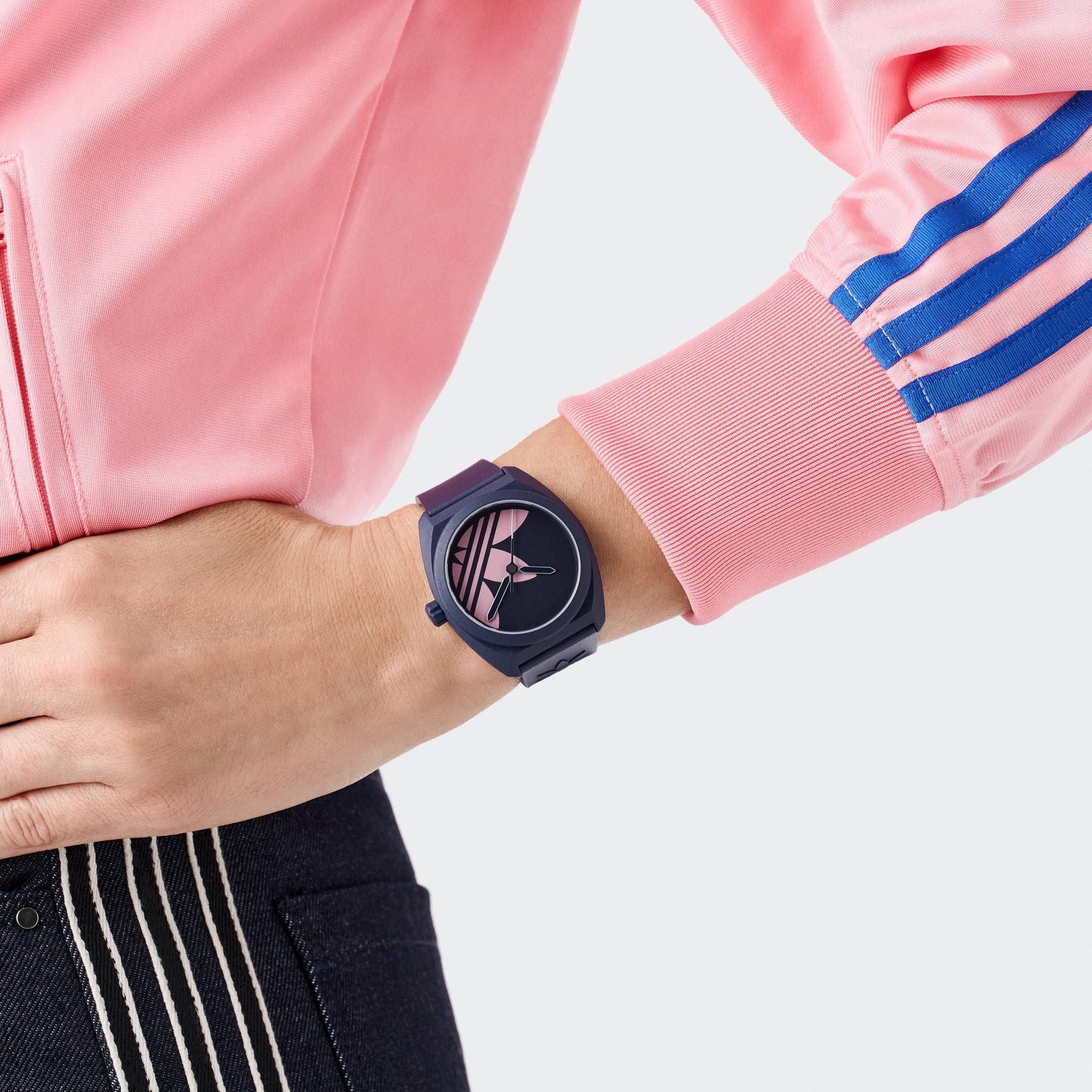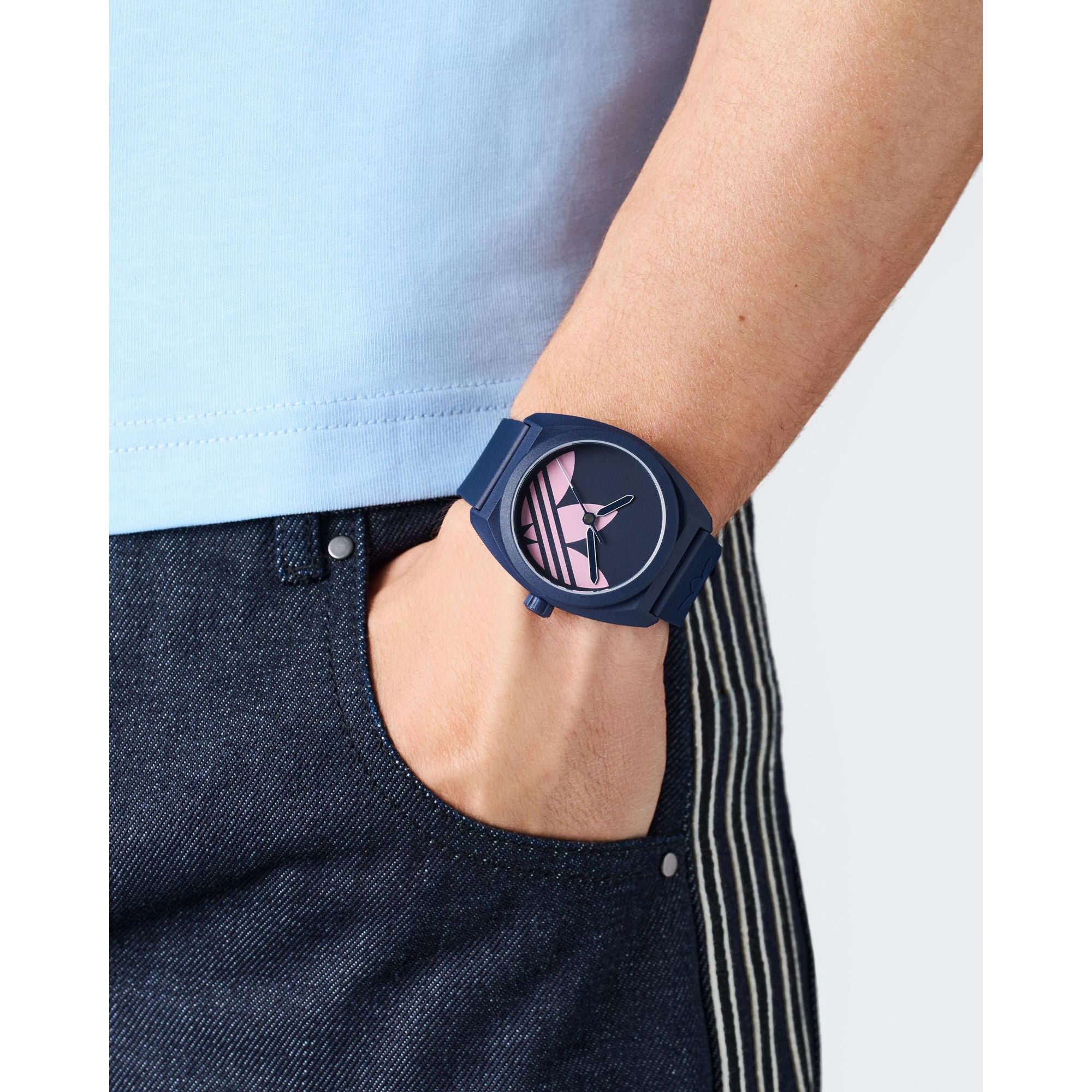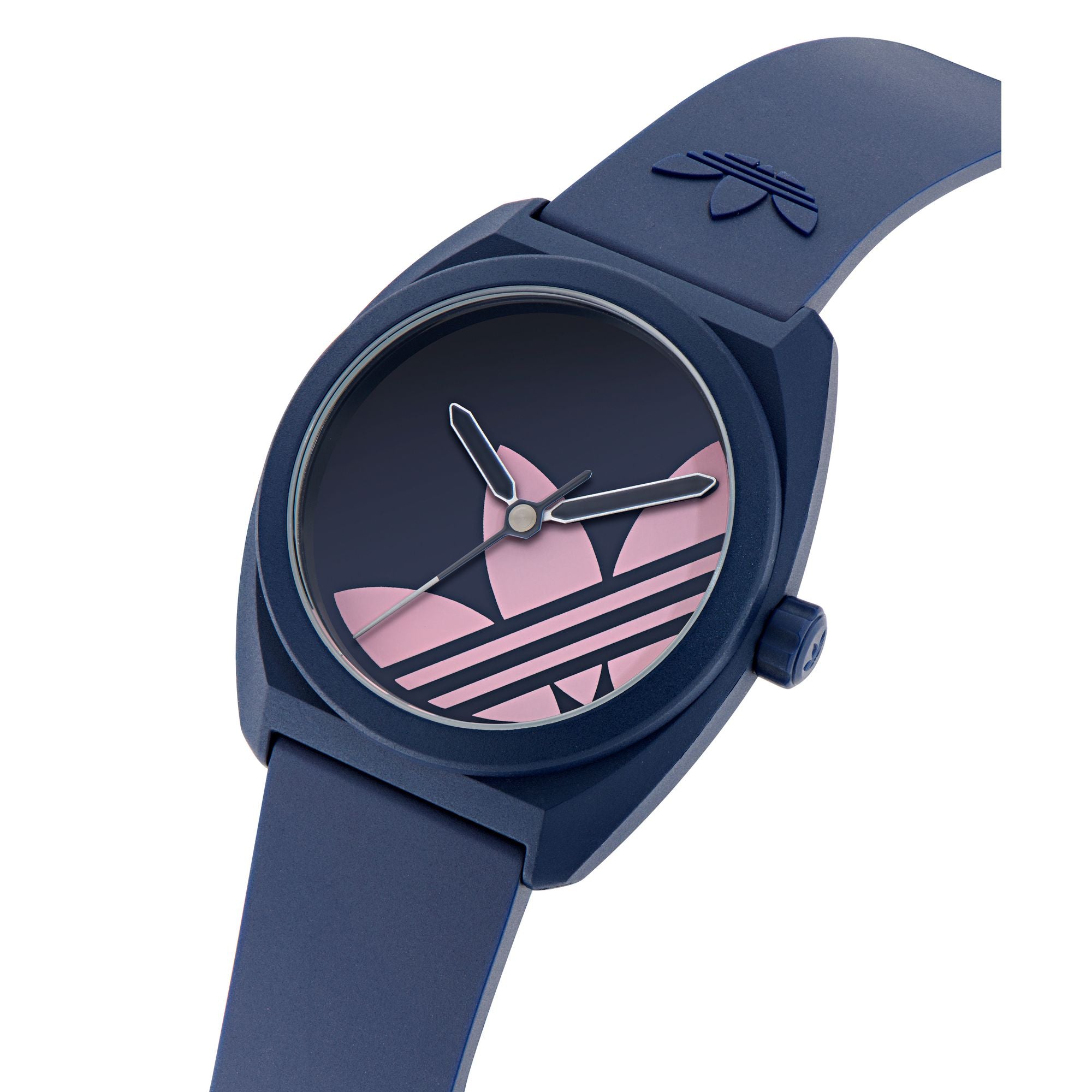 | Armband: | blaues Kunststoffband (Bio-based PU), Dornschließe Breite: ca. 22 mm Länge der Uhr: ca. 22 cm |