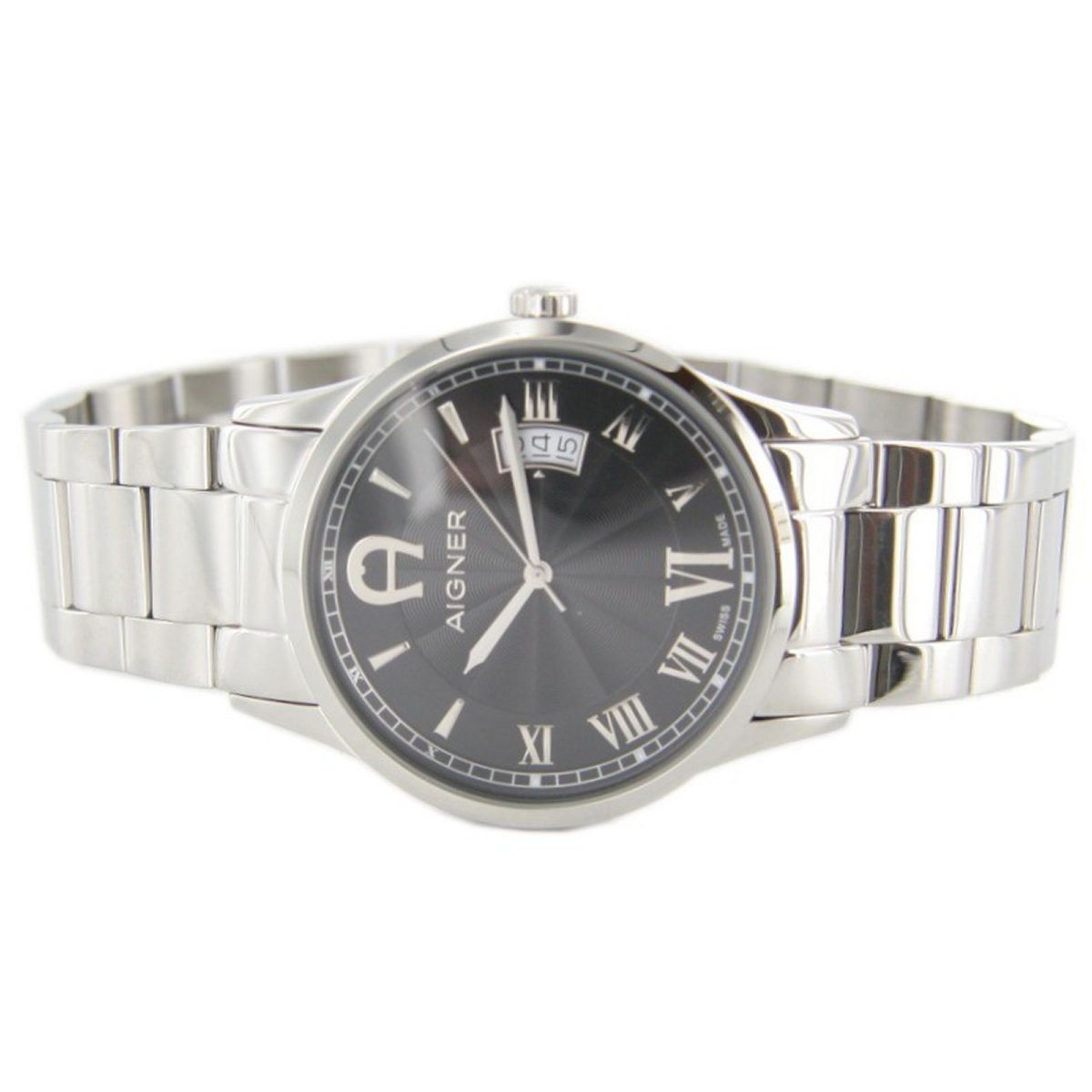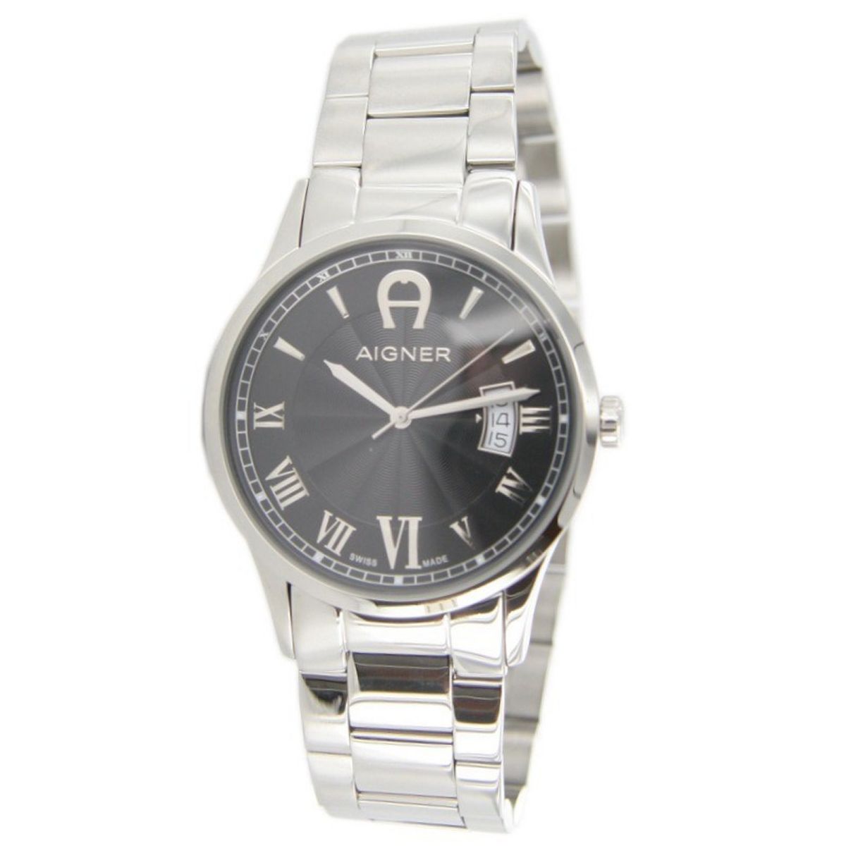 gehärtetes Mineralglas, Stunden - Minuten - Sekundenanzeige, Datumsanzeige Quarzwerk, Krone mit graviertem AIGNER Logo |