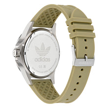 | Armband: | beiges Silikonarmband, Dornschließe Breite: ca. 22 mm Länge der Uhr: ca. 22 cm |