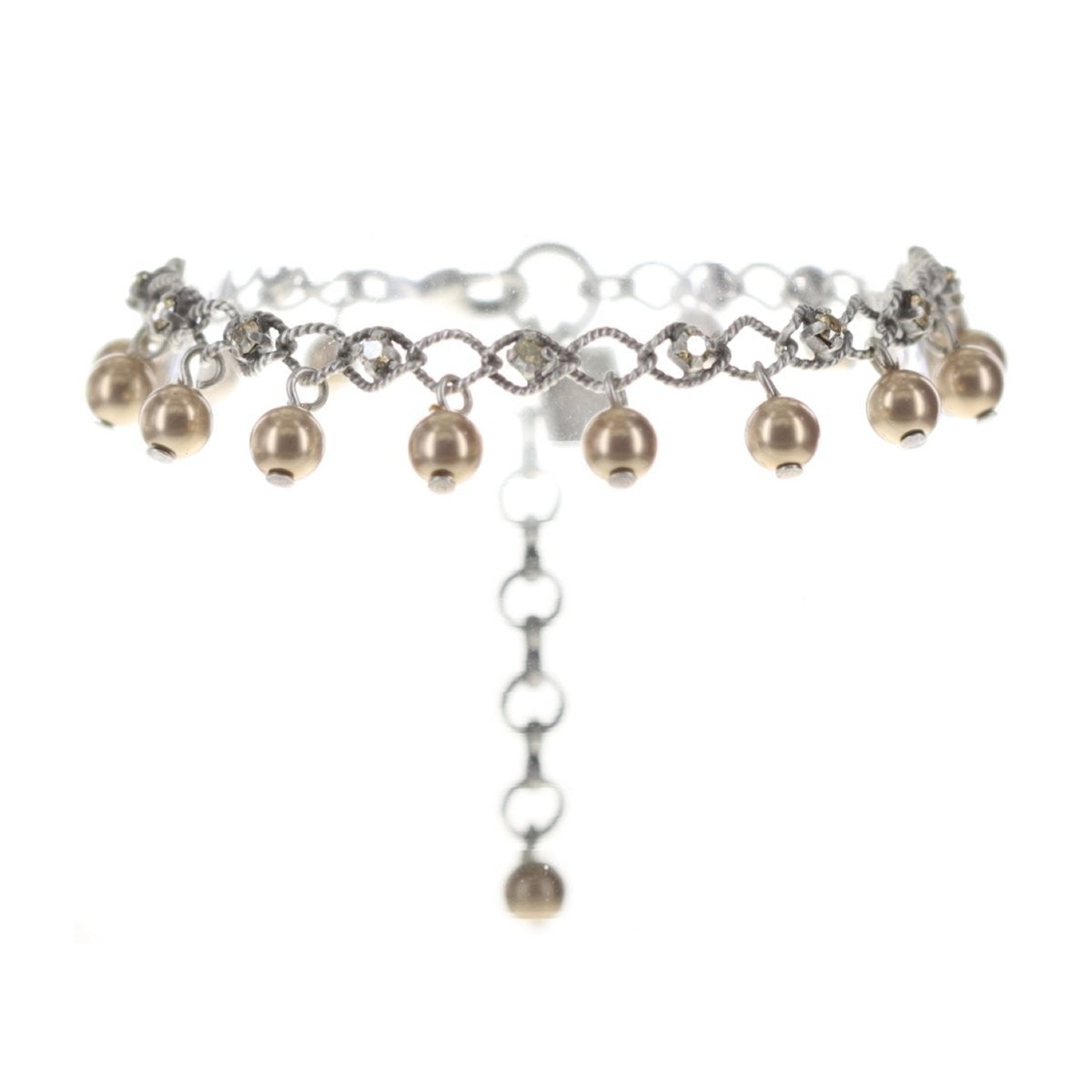 | Material: | Tombak (galvanisiert) - silberfarben und antiallergen, Armkette verziert mit Kristall Elements und Kunstperlen  |