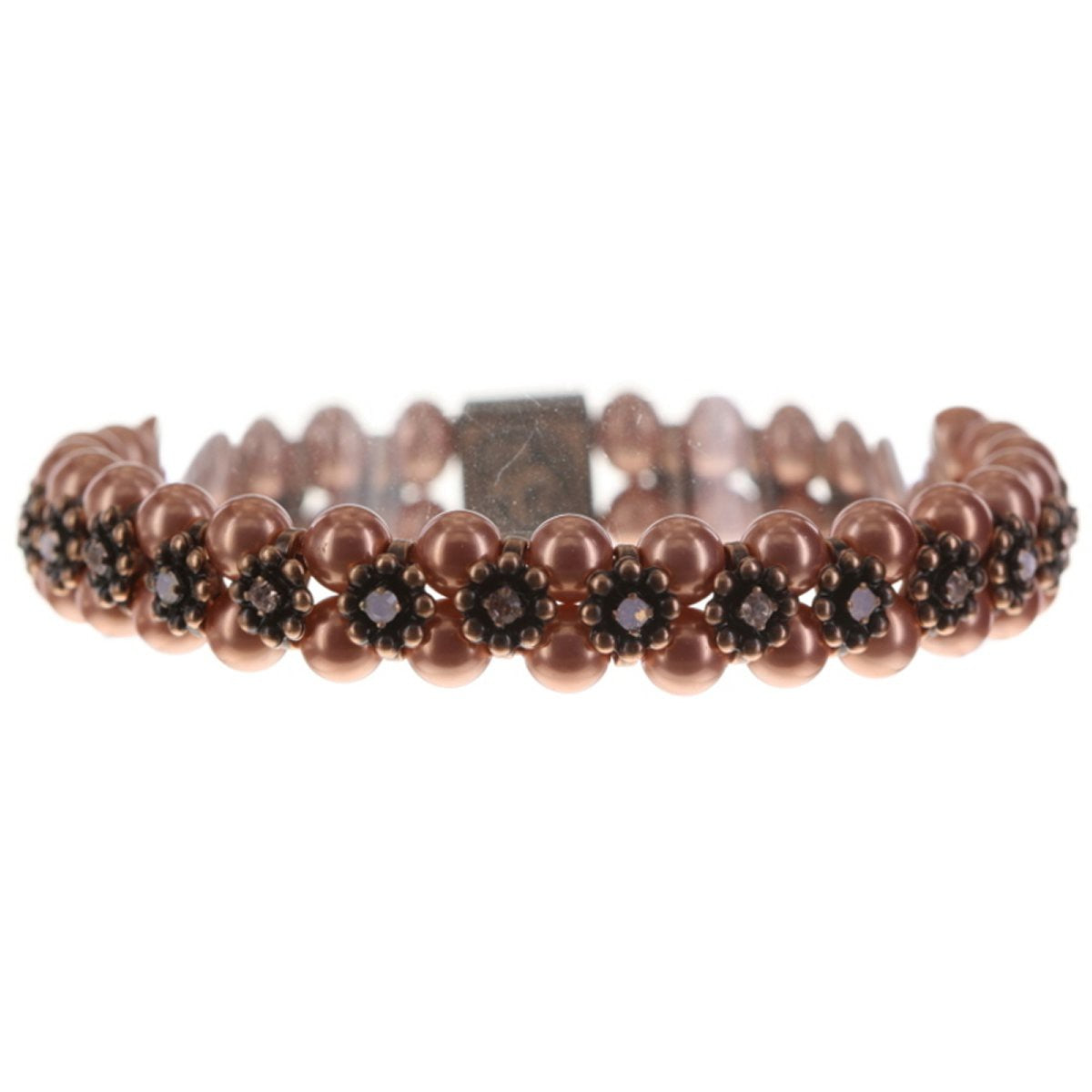 | Material: | Tombak (galvanisiert) - altkupferfarben und antiallergen, Armband verziert mit Metall Elementen, Kristall Elementen und Kunstperlen  |