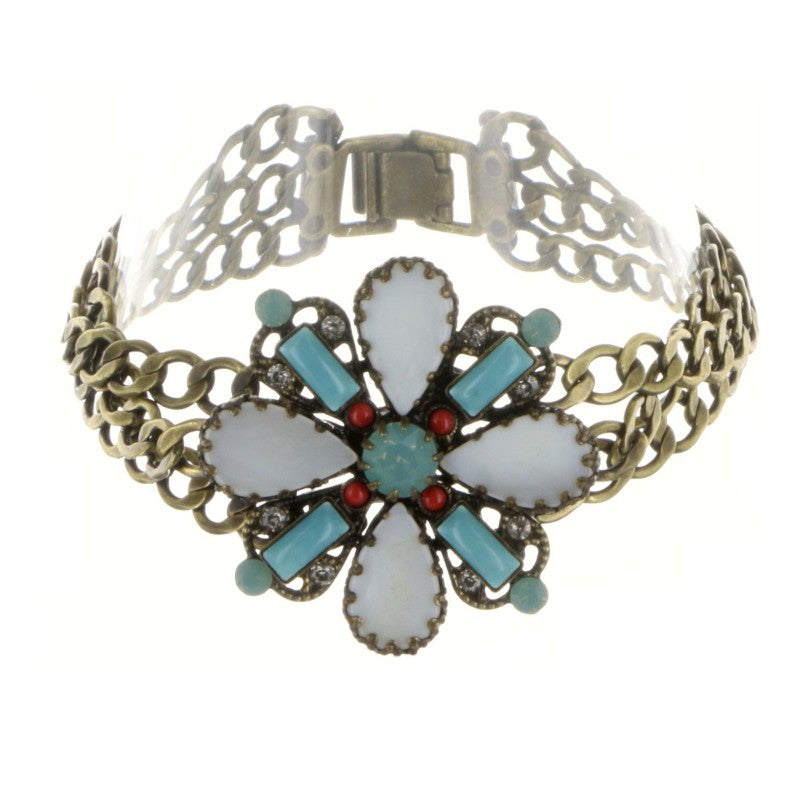 | Material: | Messing - antikmessing , Armband verziert mit Perlmutt, Kristall Elements s und emaillierten Schmuckelementen |