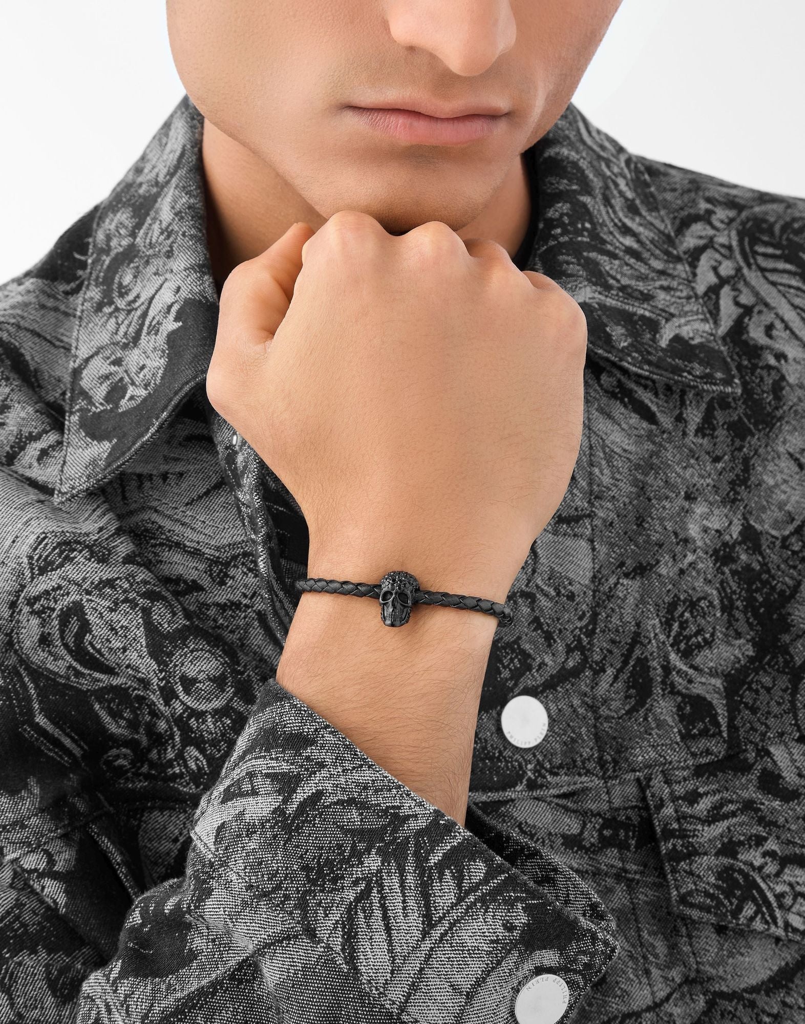 | Material: | Herren Armband aus Leder / Edelstahl IP Black, Anhänger SKULL mit Preciosa Crystals Farbe: schwarz |
