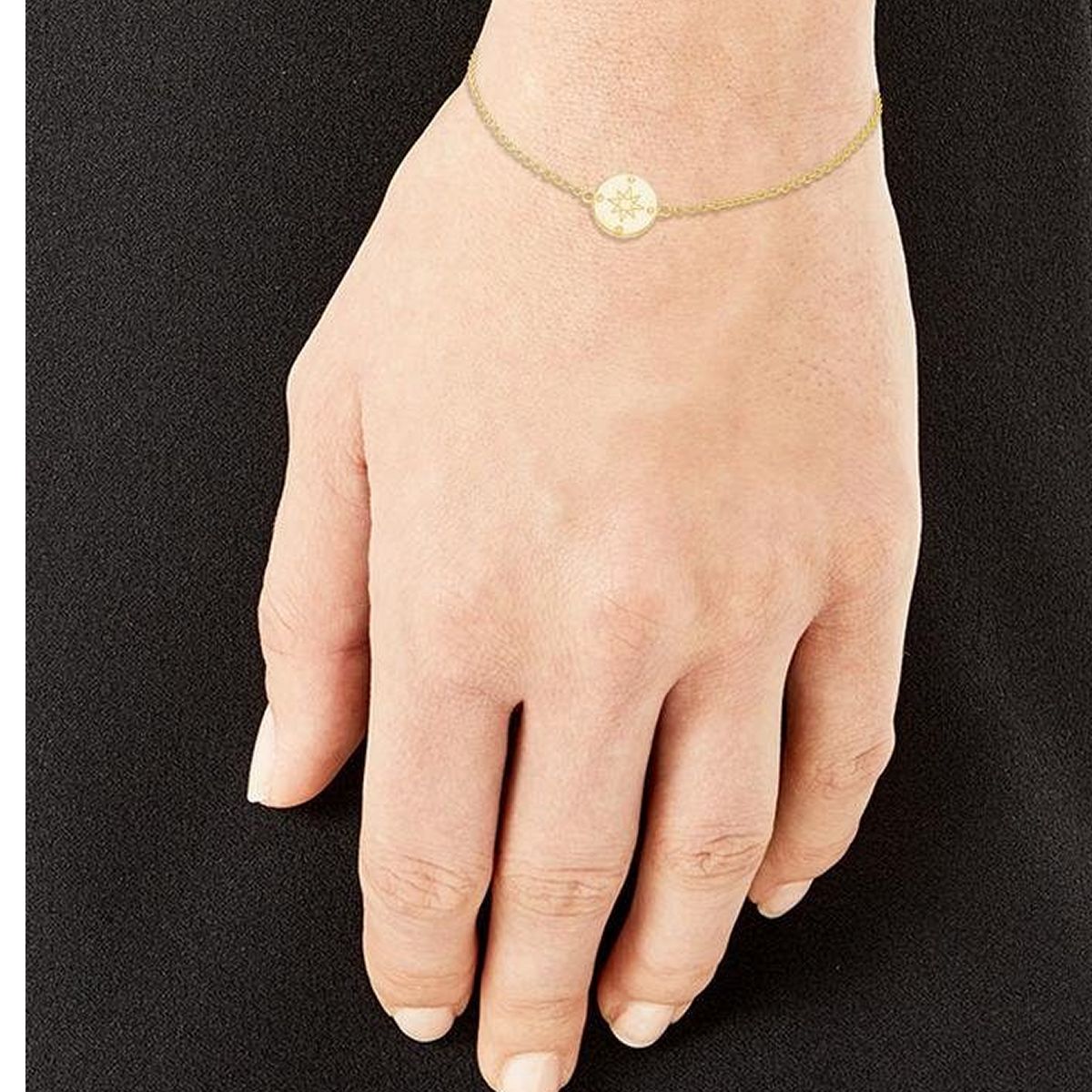 | Material: | Damen Armband / Armkette aus 925 Sterling Silber goldfarben, Anhänger: mit Zirkonia (synth.) Motiv: Kompass |