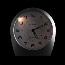 | Der ATRIUM Funkwecker zeichnet sich aus durch ein klassisches und zeitloses Design. Er empfängt das Signal über den Zeitzeichensender DCF77 bei Frankfurt. Die Zeiteinstellung, sowie Umstellung von Sommer- und Winterzeit erfolgen automatisch. Die abgerundete Form in matt schwarzer Farbe und schlichtem Zifferblattdesign, verleihen ihm sein dezentes und schickes Aussehen. Der Quarzwecker ist mit den wichtigsten Funktionen ausgestattet: Einem sehr gut hörbaren Alarm mit seitlichem Absteller, wahlweise kann dabei die Snoozefunktion aktiviert werden. Mit dem obigen Knopf wird auch das Zifferblatt beleuchtet, nach 5 Sekunden geht das Licht automatisch aus. | |