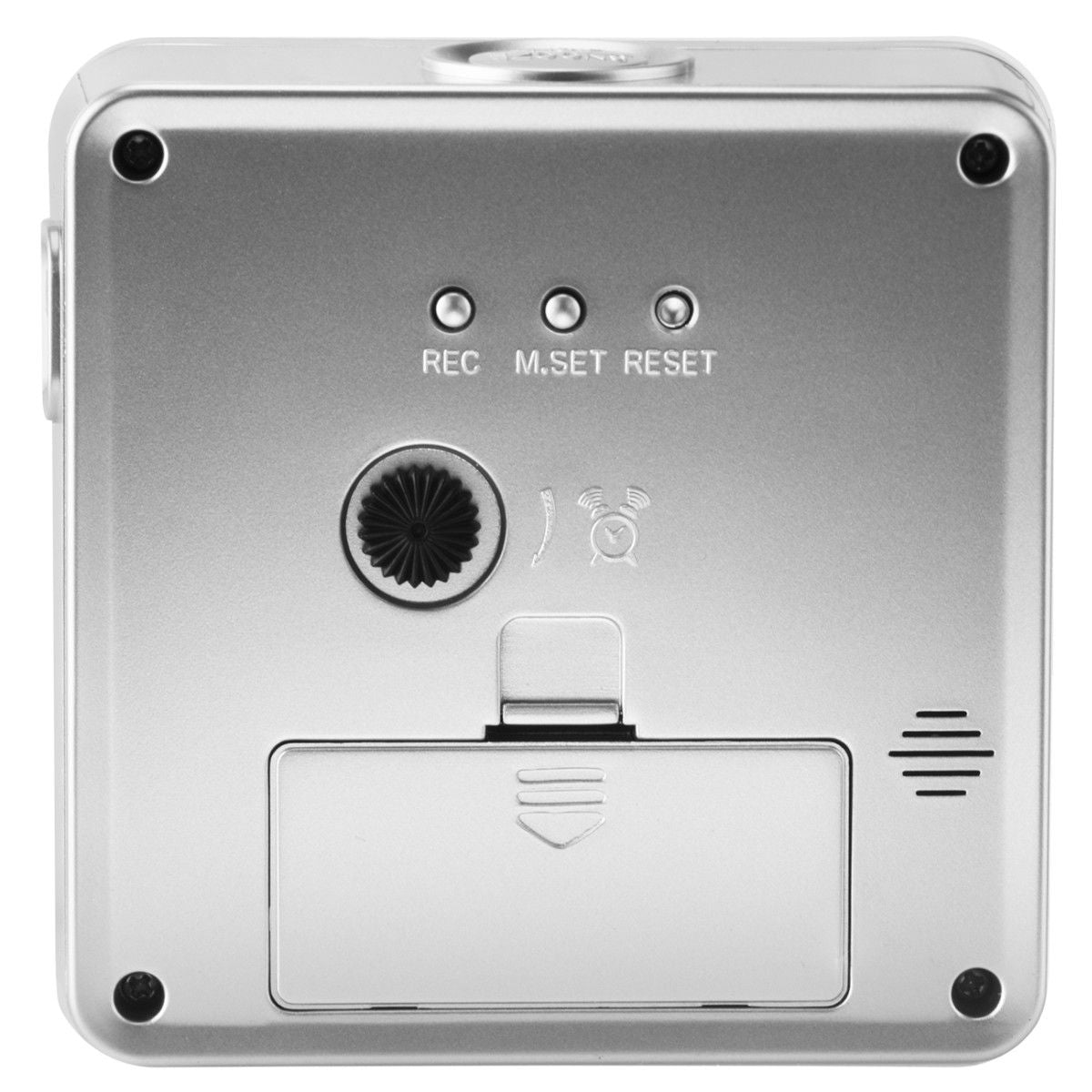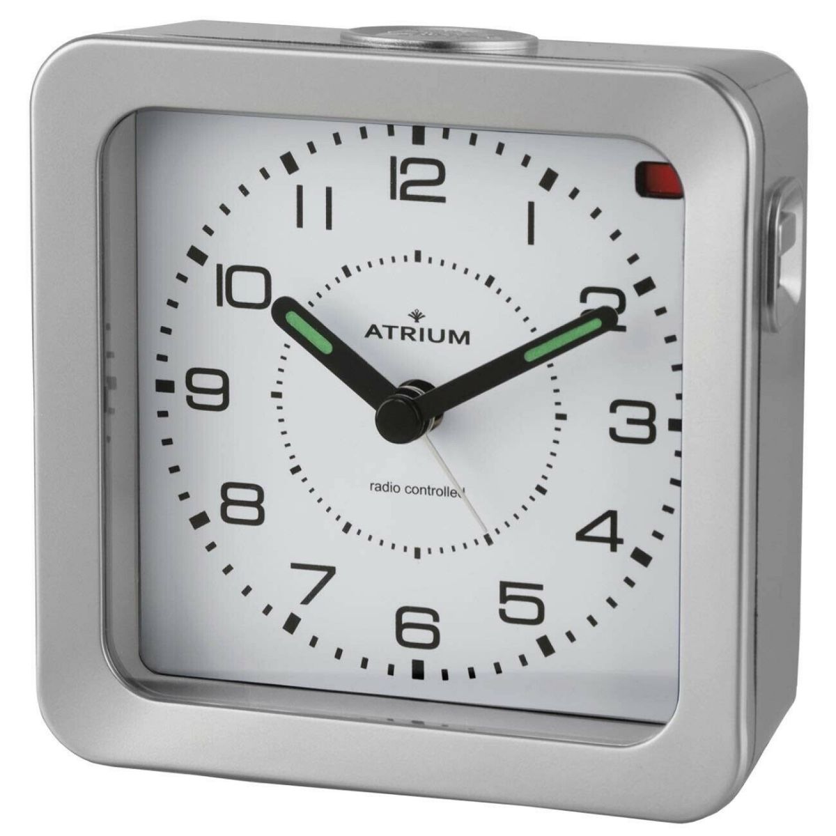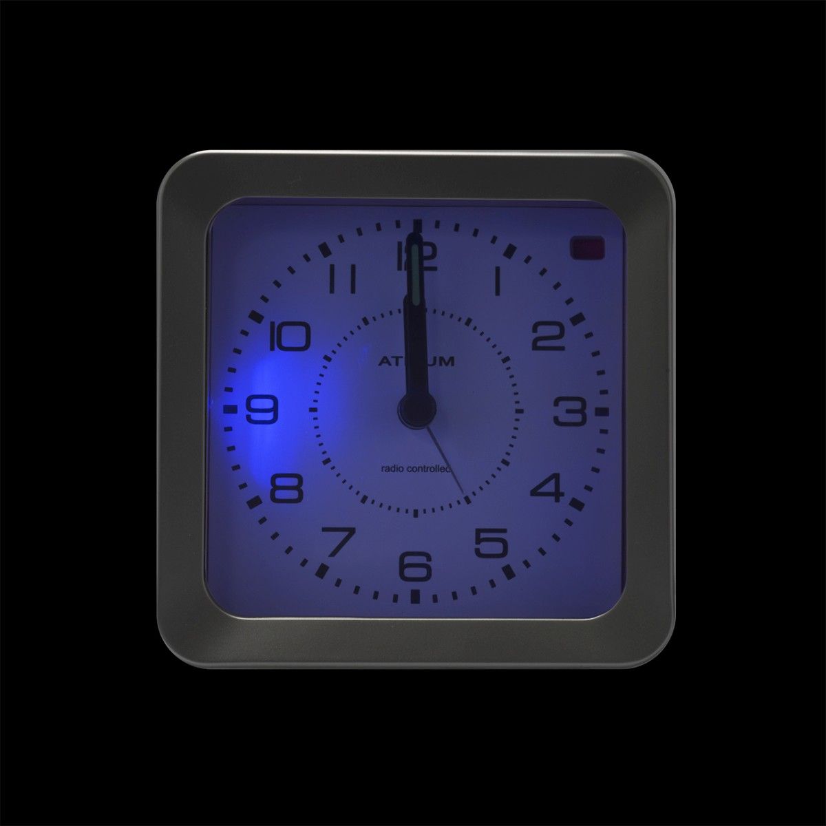 | Der ATRIUM Funkwecker zeichnet sich aus durch ein klassisches und zeitloses Design aus. Er empfängt das Signal über den deutschen Zeitzeichensender DCF77. Die Zeiteinstellung, sowie Umstellung von Sommer- und Winterzeit erfolgen automatisch. Die eckige Form in Silber-metallic mit silberfarbenen Bedienelementen und das schlichte Zifferblattdesign, verleihen ihm sein dezentes und schickes Aussehen. Die Besonderheit bei dem Wecker ist die rote Alarmbereitschaftsanzeige. Ist der Alarm eingeschaltet, ändert sich die Anzeige auf dem Zifferblatt in Rot. Die großen Zahlen in Schwarz tragen zur guten Ablesbarkeit bei. Das Wecksignal ist ein deutlich hörbarer, vierstufig ansteigender Piepton, wahlweise kann dabei die Snooze-Funktion (Weckwiederholung) aktiviert werden. Mit dem obigen Knopf wird auch das Zifferblatt blau beleuchtet, nach 5 Sekunden geht das Licht automatisch aus. Als modernes Dekoelement im Schlaf- oder Arbeitszimmer ist er auch als Tischuhr ein schöner Blickfang und ideal als Geschenk zu jedem Anlass. | |