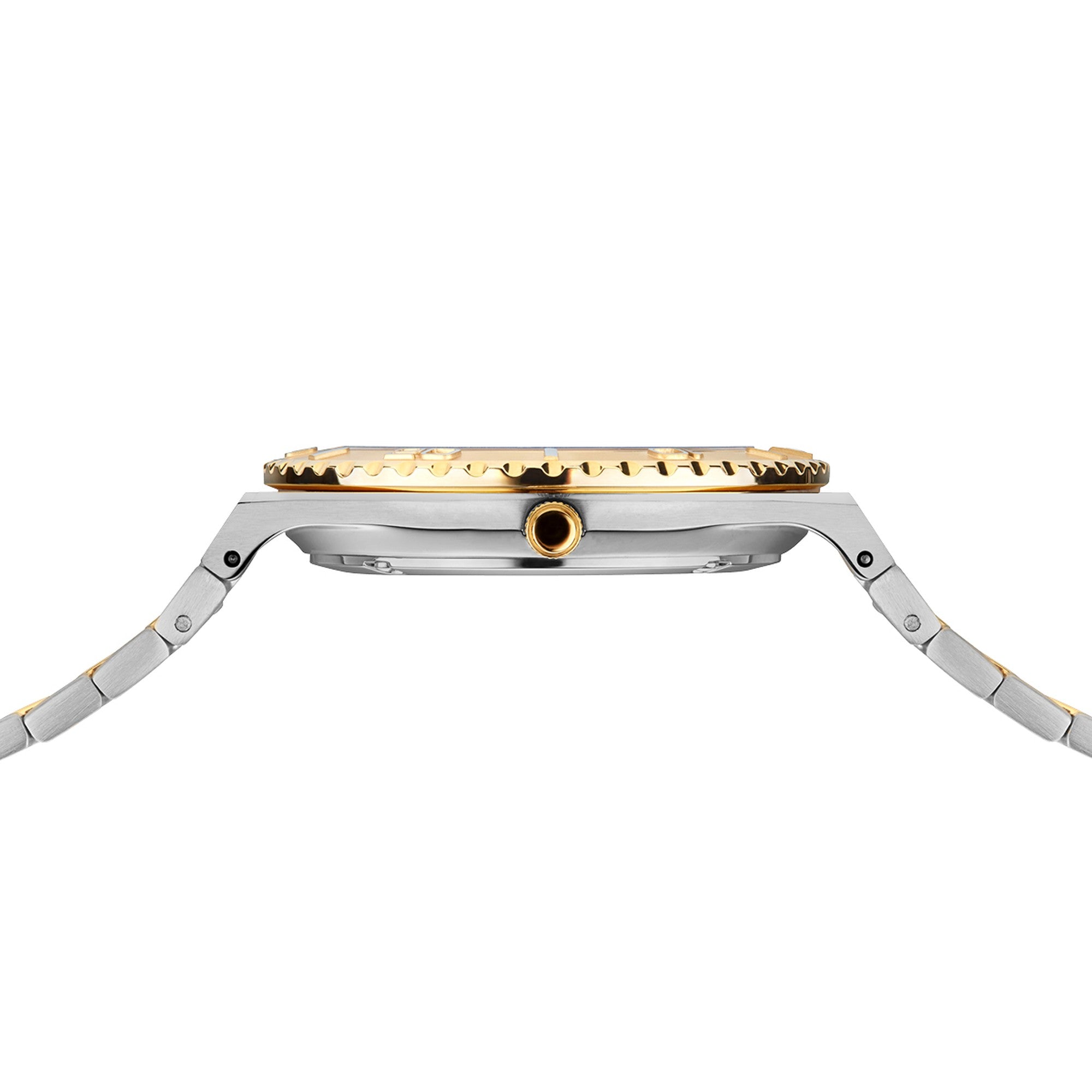 | Armband: | Edelstahlband bicolor, Breite: ca. 1,8 cm Länge d.Uhr: 20,5 cm, Faltschließe |