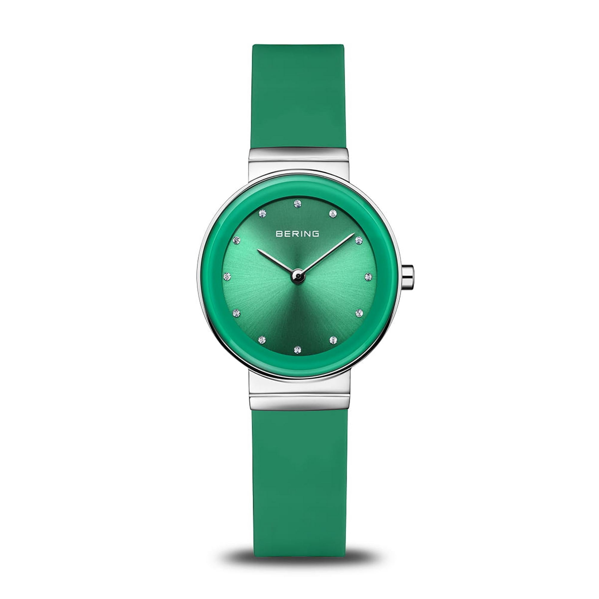 | Armband: | Silikonarmband grün, Breite: ca. 1,4 cm Länge d.Uhr: 22,5 cm Dornschließe |
