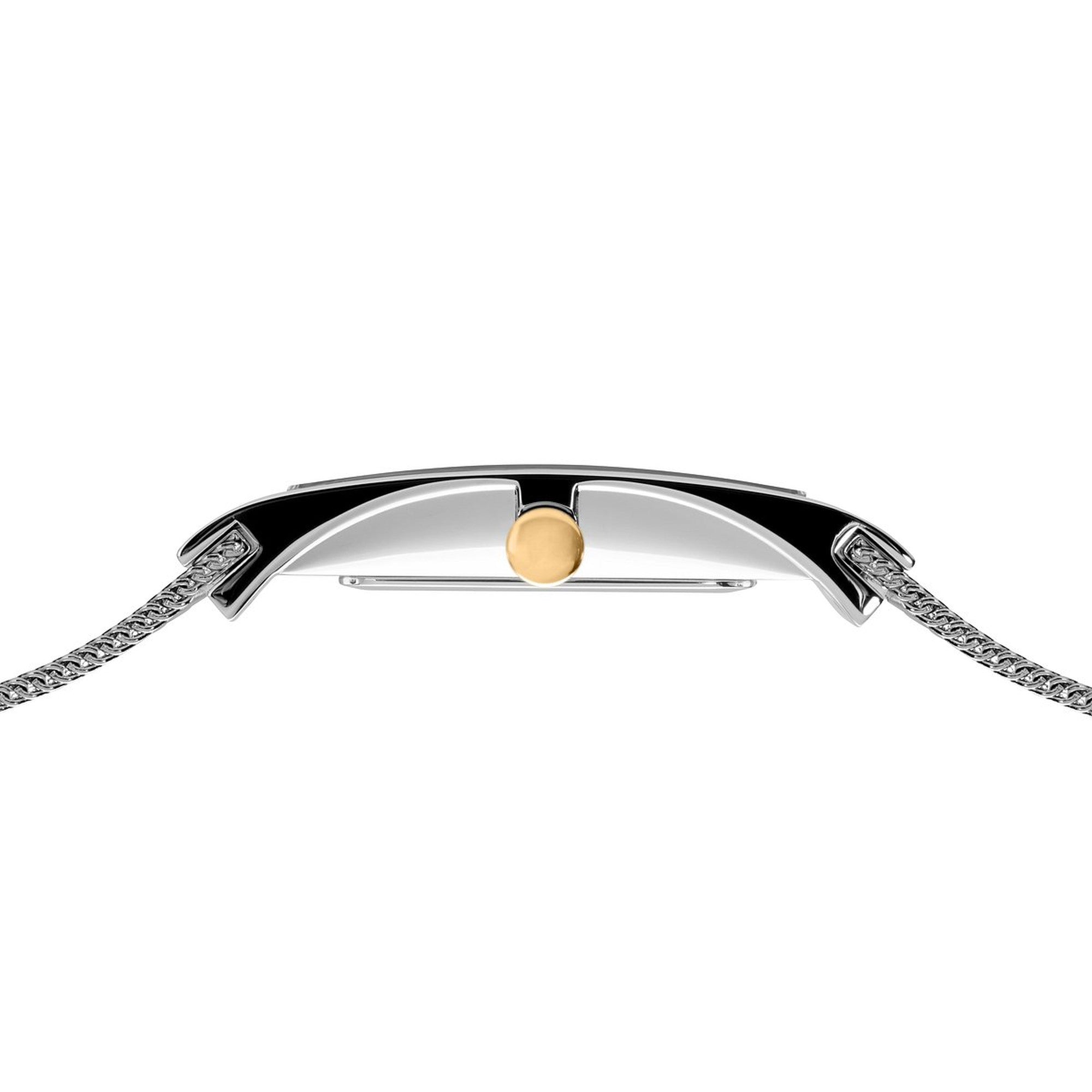 Gehäuse: Edelstahlgehäuse silber poliert zum Teil gelbgold beschichtet, B x H : ca. 2,2 x 3,8 cm, Stärke: ca. 0,6 cm