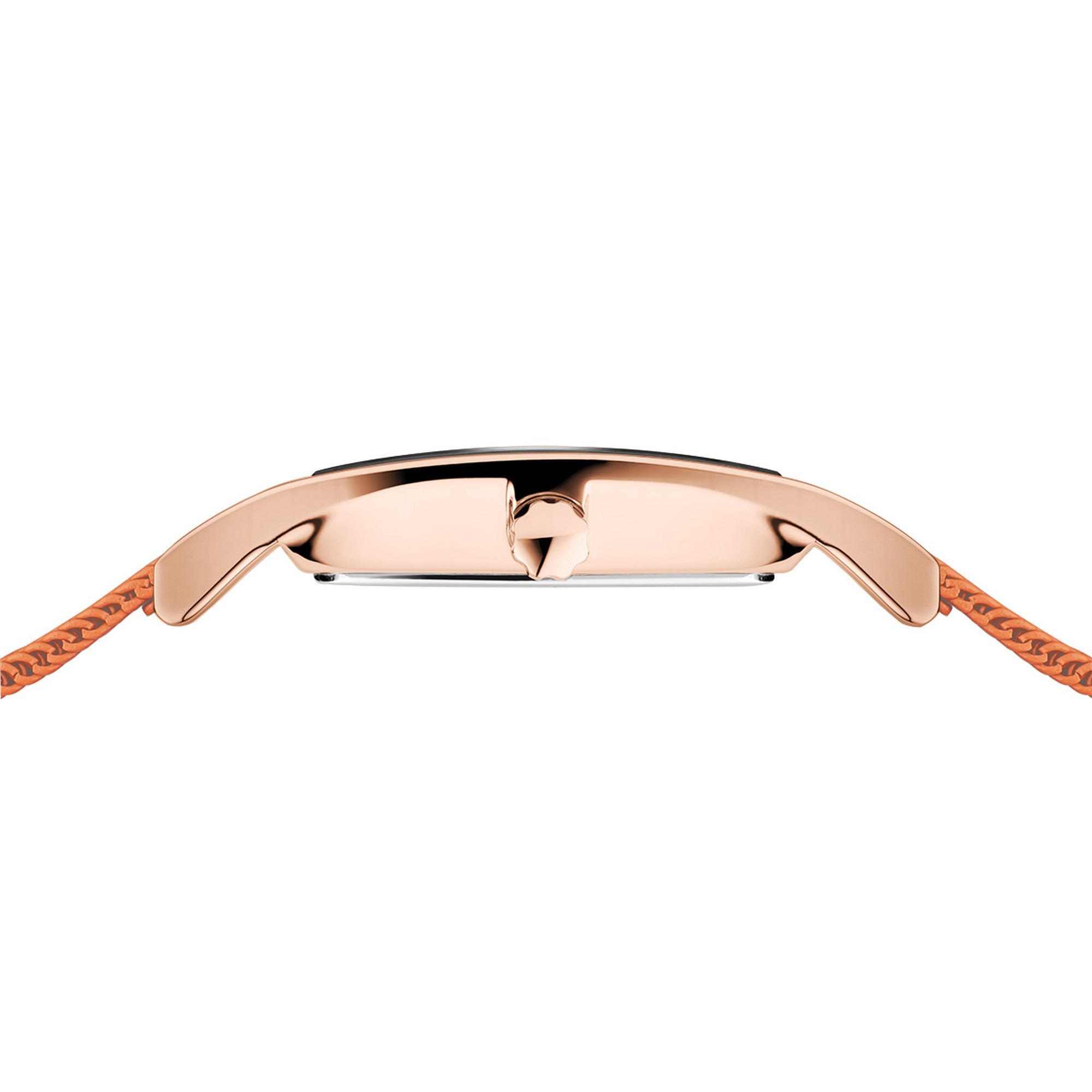 Gehäuse: Edelstahlgehäuse IP rotgoldfarben, mit Steinchen bestückt, B x H: ca. 2,6 x 3,8 cm, Stärke: ca. 0,7 cm