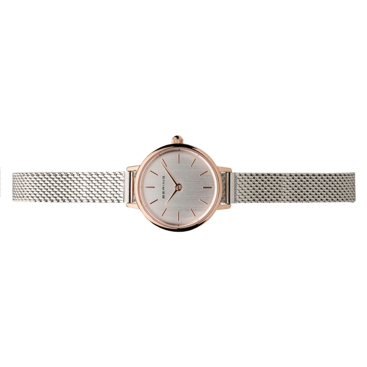 | Armband: | silbernes Edelstahl Meshband, Breite: ca. 0,8 cm Länge d.Uhr: 20,5 cm, Druckverschluss mit Sicherheitsbügel |