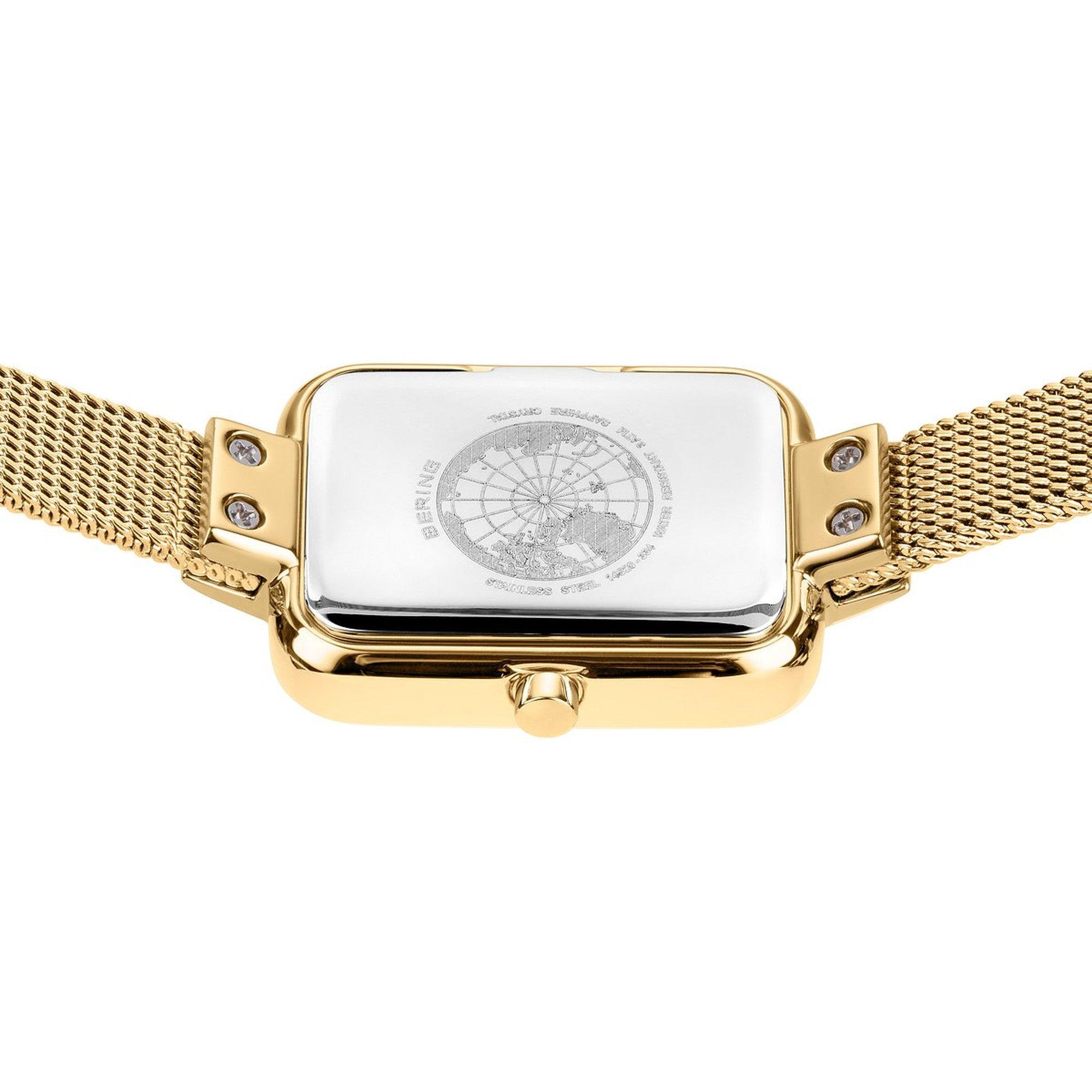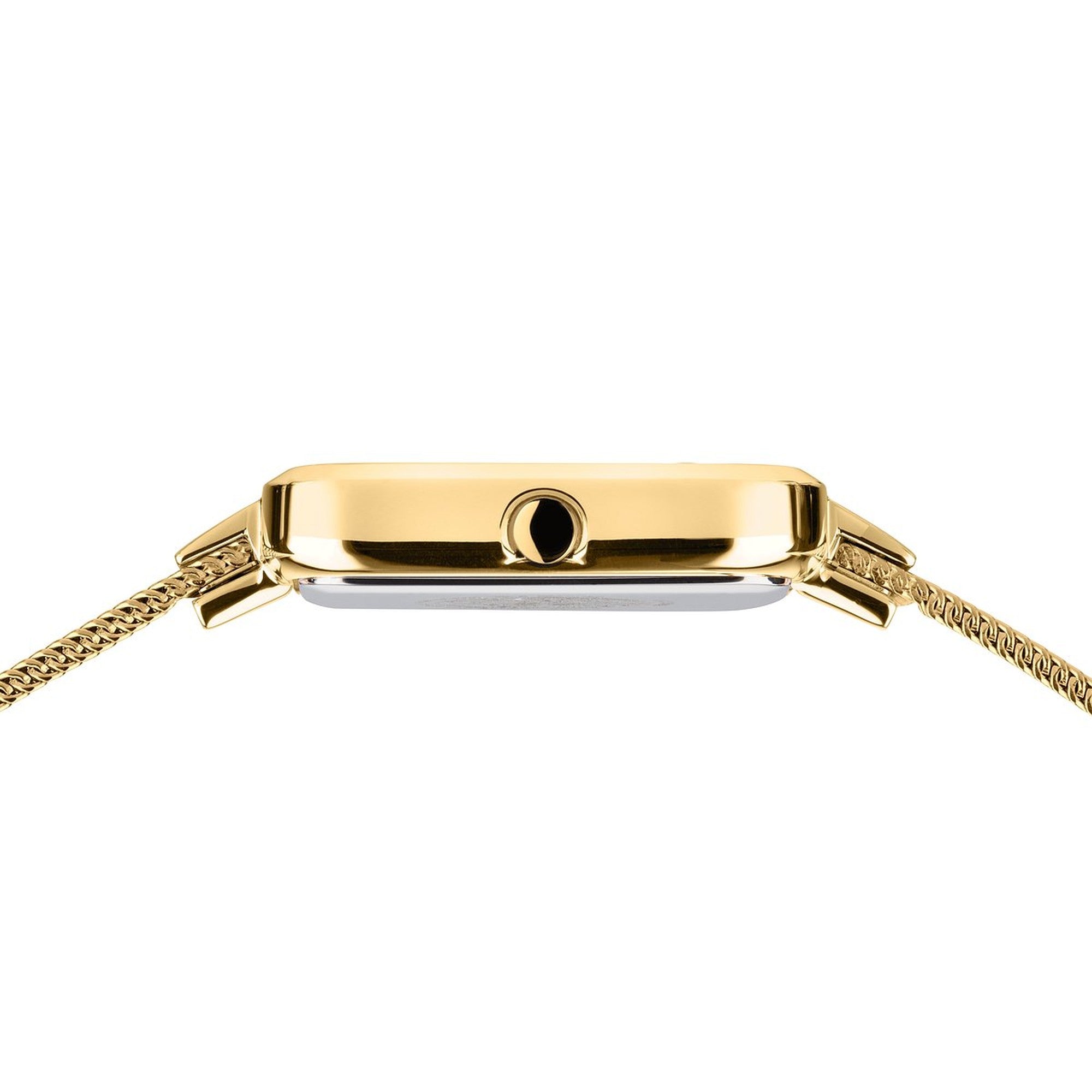 goldfarbenes Meshband, Breite: ca. 0,8 cm Länge d.Uhr: 20,5 cm, Druckverschluss mit Sicherheitsbügel |
