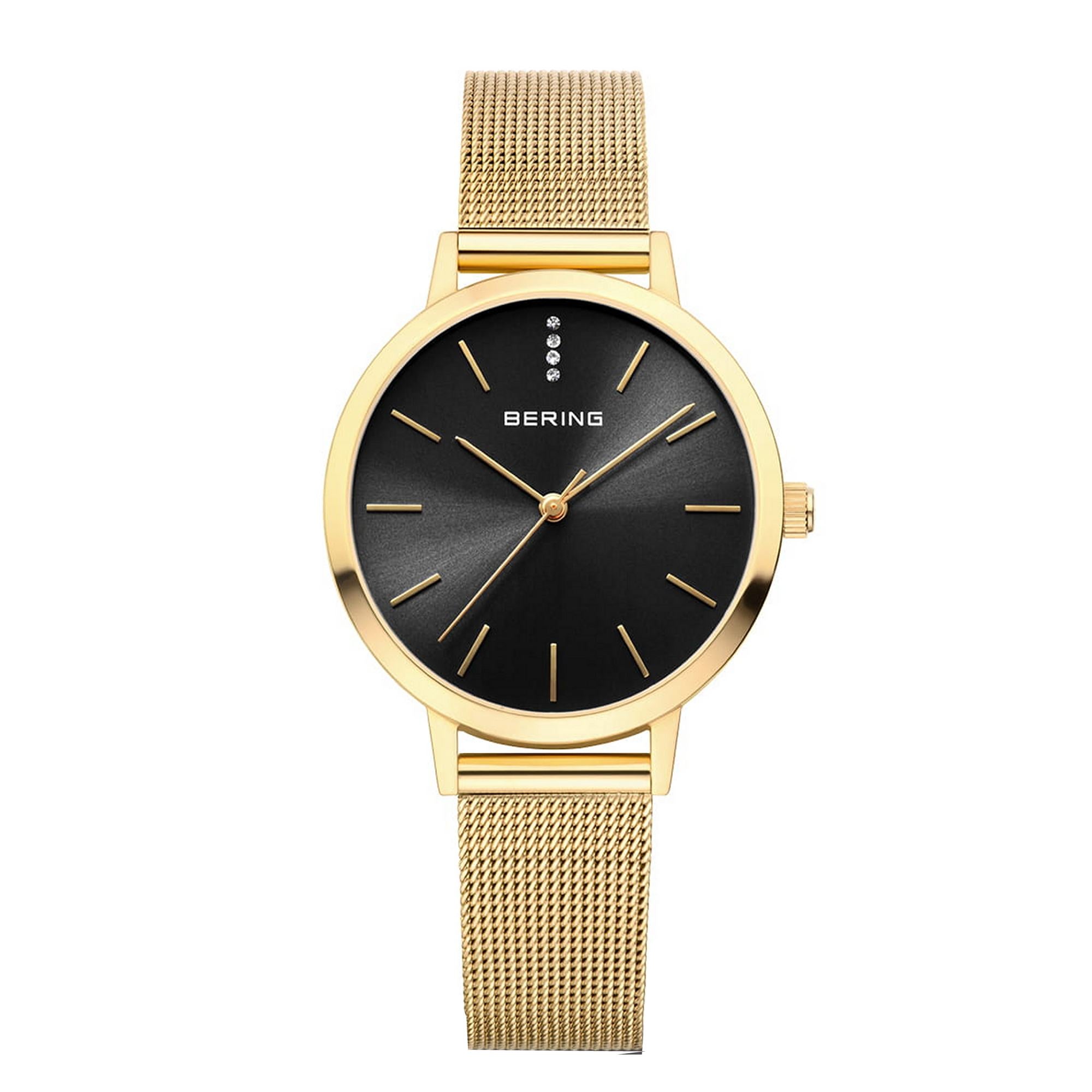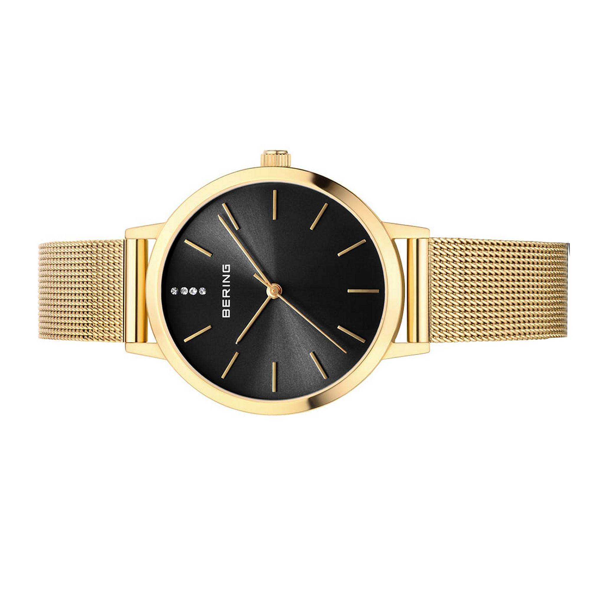 | Armband: | Edelstahlarmband goldfarben (Meshband), Breite: ca. 1,3 cm Länge d.Uhr: 19,0 cm, Druckverschluss mit Sicherheitsbügel |