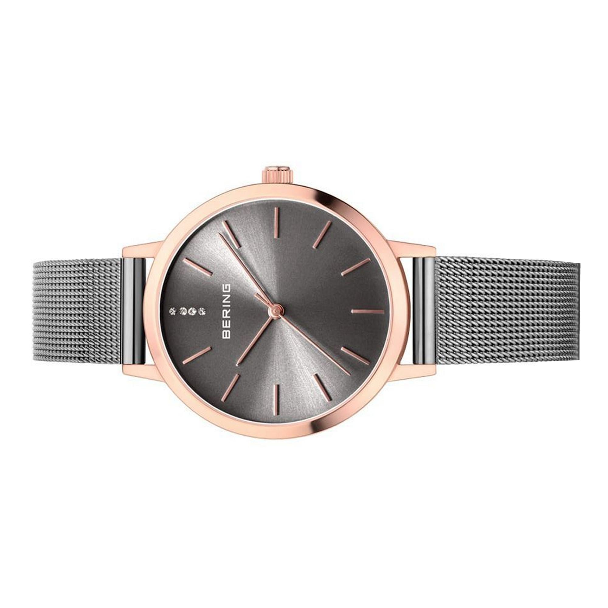 | Zifferblatt: | Analog, Farbe: grau mit Steinchen bestückt |