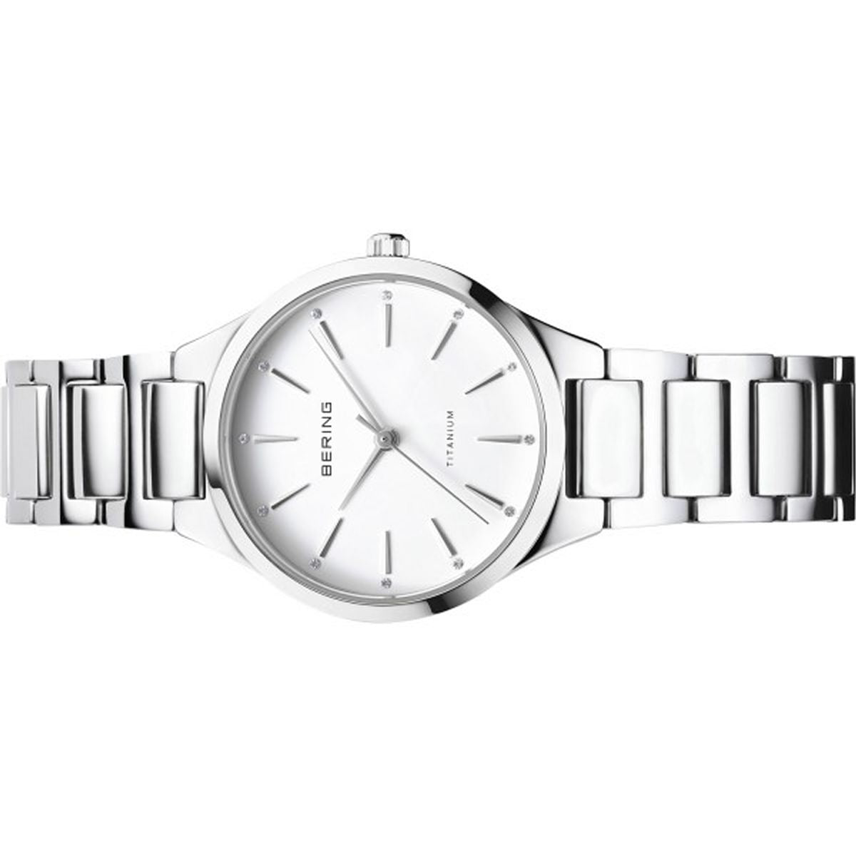 | Armband: | silberfarbenes Titanarmband, Breite: ca. 1,4 - 1,5 cm Länge d.Uhr: 20,5 cm, Faltschließe |