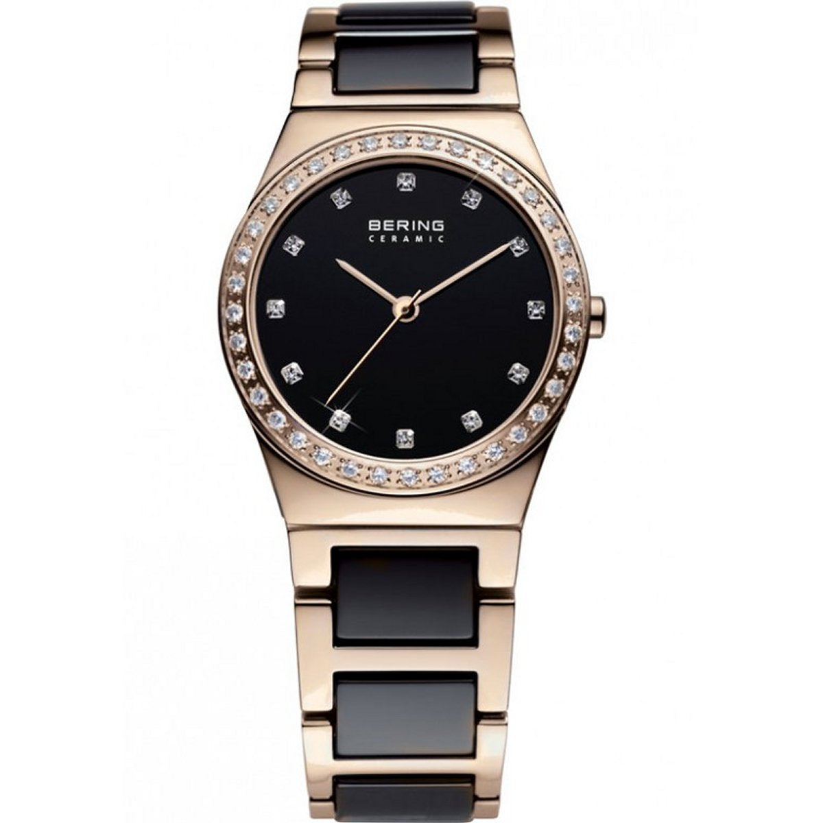| Gehäuse: | Keramikgehäuse rosegoldfarben mit schwarzer Keramiklünette, Steinchen besetzt, Durchmesser: ca. 3,5 cm, Stärke: ca. 0,7 cm |