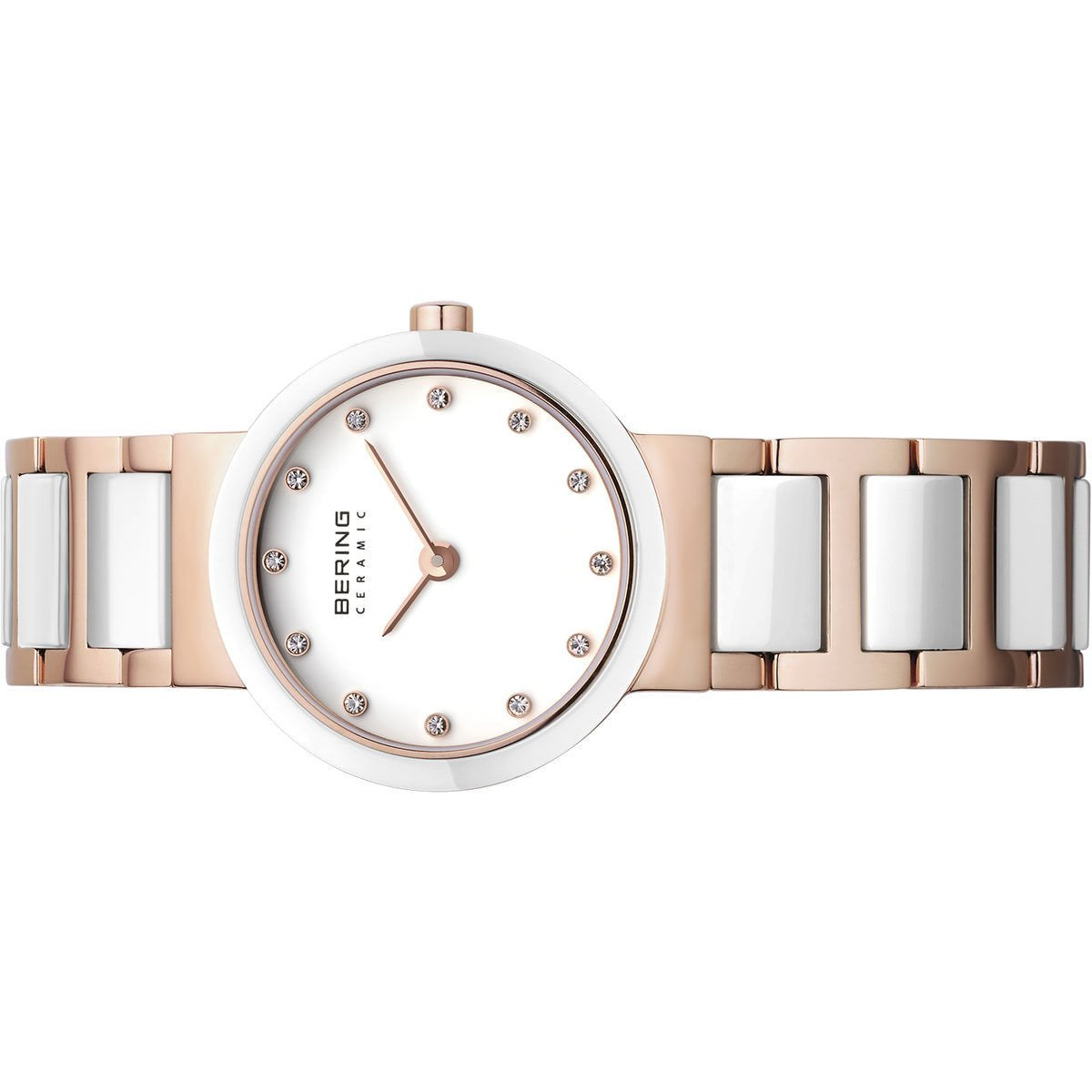Gehäuse: Edelstahlgehäuse poliert Roségoldfarben mit weißer Lünette aus Keramik, Durchmesser: ca. 2,5 cm, Stärke: ca. 0,6 cm