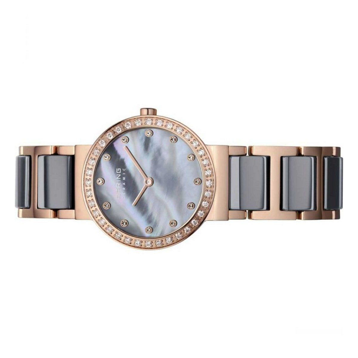 | Armband: | Edelstahlarmband mit Keramikeinsatz grau, Breite: ca. 1,4 cm Länge d.Uhr: 20,5 cm, Druckverschluss mit Sicherheitsbügel |