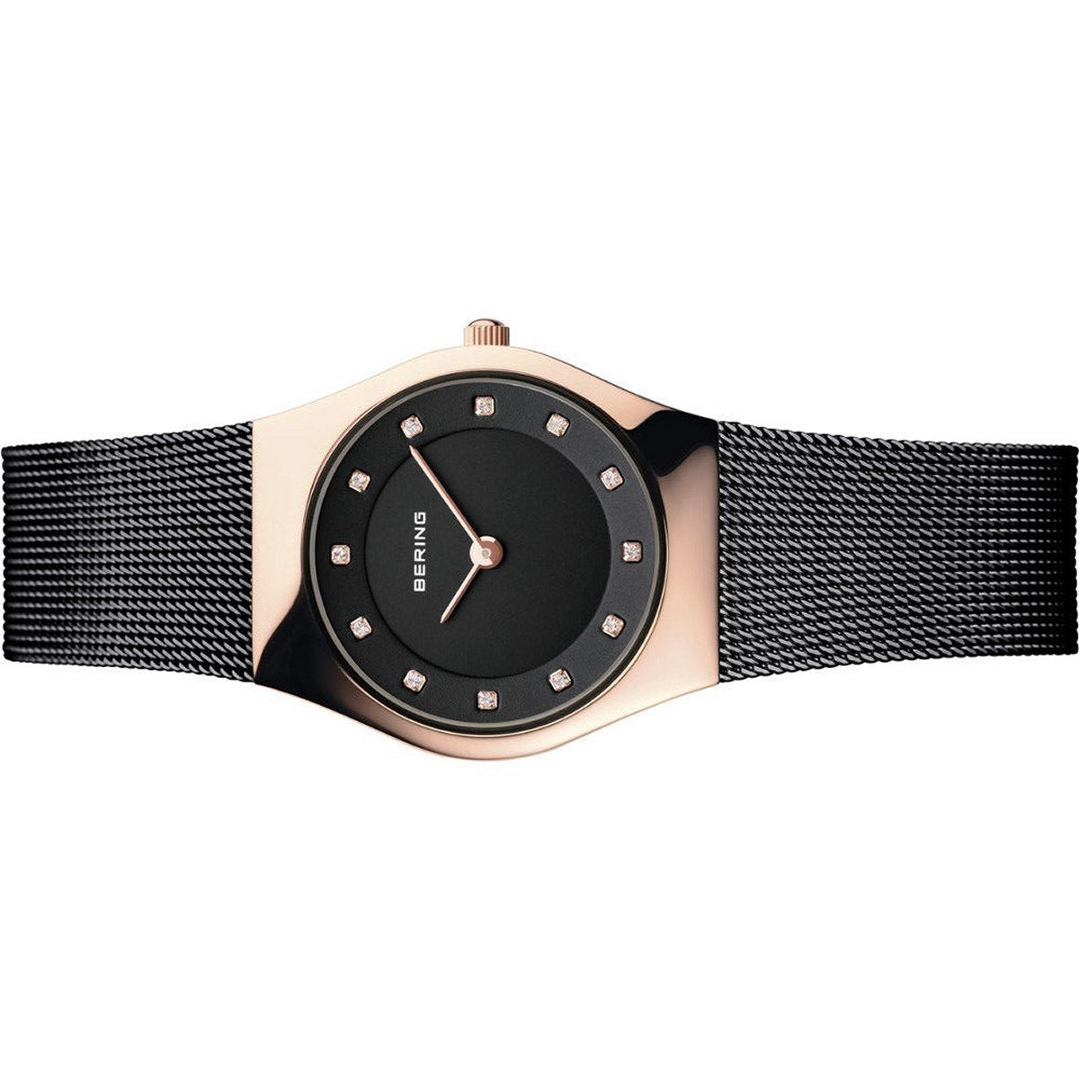 | Armband: | Meshband schwarz, Breite: ca. 1,3 - 1,7 cm Länge d.Uhr: 20,5 cm, Druckverschluss mit Sicherheitsbügel |