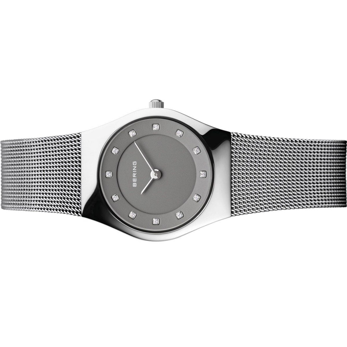 | Armband: | Meshband grau, Breite: ca. 1,3 - 1,7 cm Länge d.Uhr: 20,5 cm, Druckverschluss mit Sicherheitsbügel |