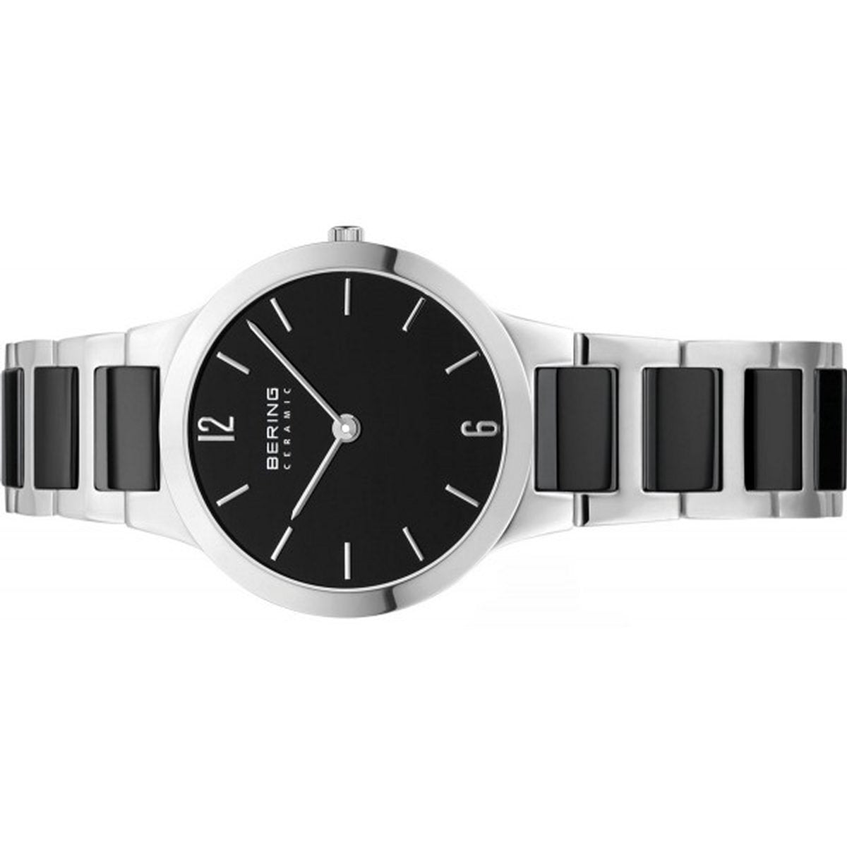 | Armband: | Edelstahlarmband mit Keramikeinsatz schwarz, Breite: ca. 1,5 cm Länge d.Uhr: 20,5 cm, Druckverschluss mit Sicherheitsbügel |