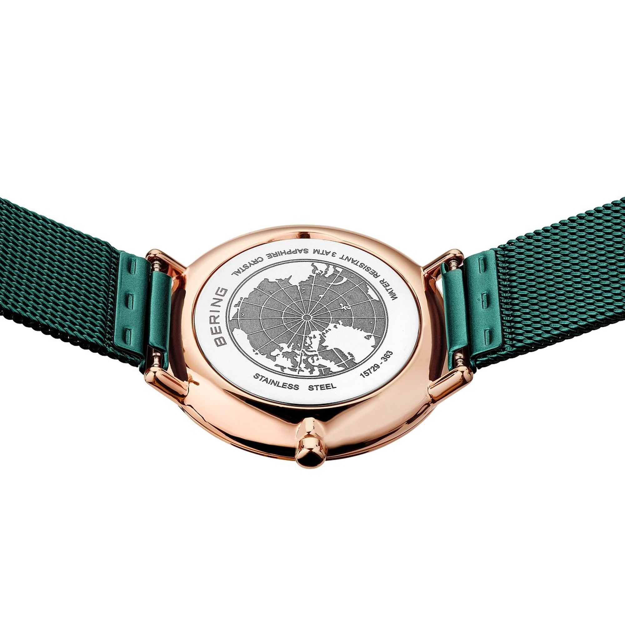 | Zifferblatt: | Analog, Farbe: grün mit Roségoldfarbenen Indexen und Zeiger |