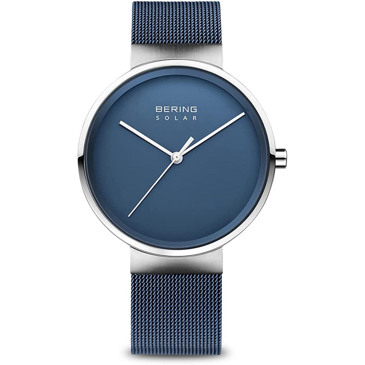 | Armband: | blaues Edelstahlarmband (Meshband), Breite: ca. 2,0 cm Länge d.Uhr: 22,5 cm, Klappschließe |