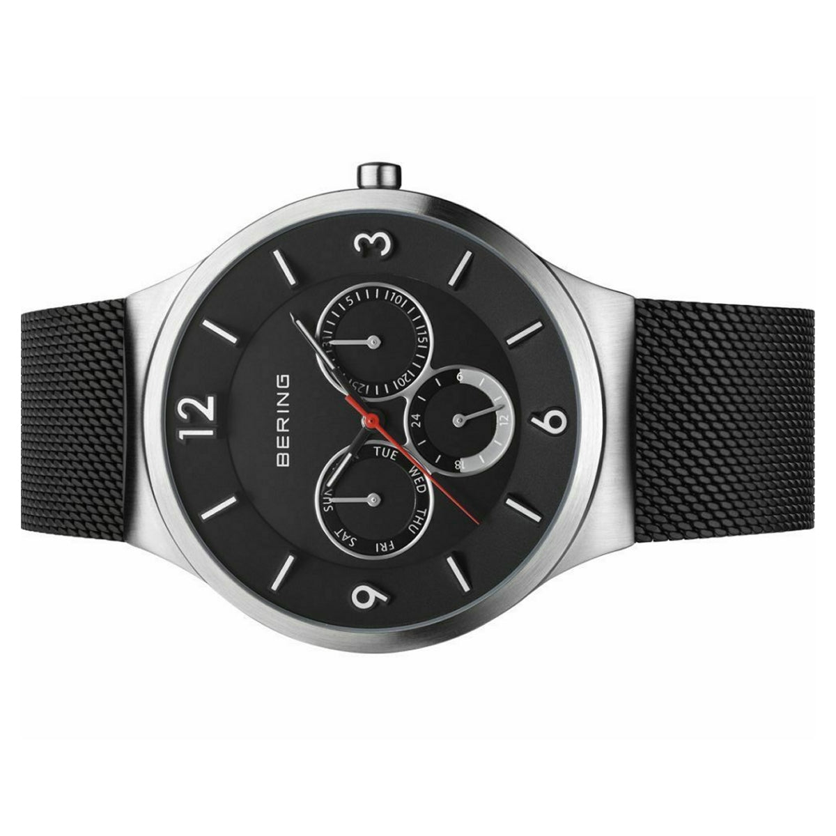 | Armband: | Edelstahlarmband schwarz in Mesh Optik, Breite: ca. 2,0 - 2,3 cm Länge d.Uhr: 22,5 cm, Druckverschluss mit Sicherheitsbügel |
