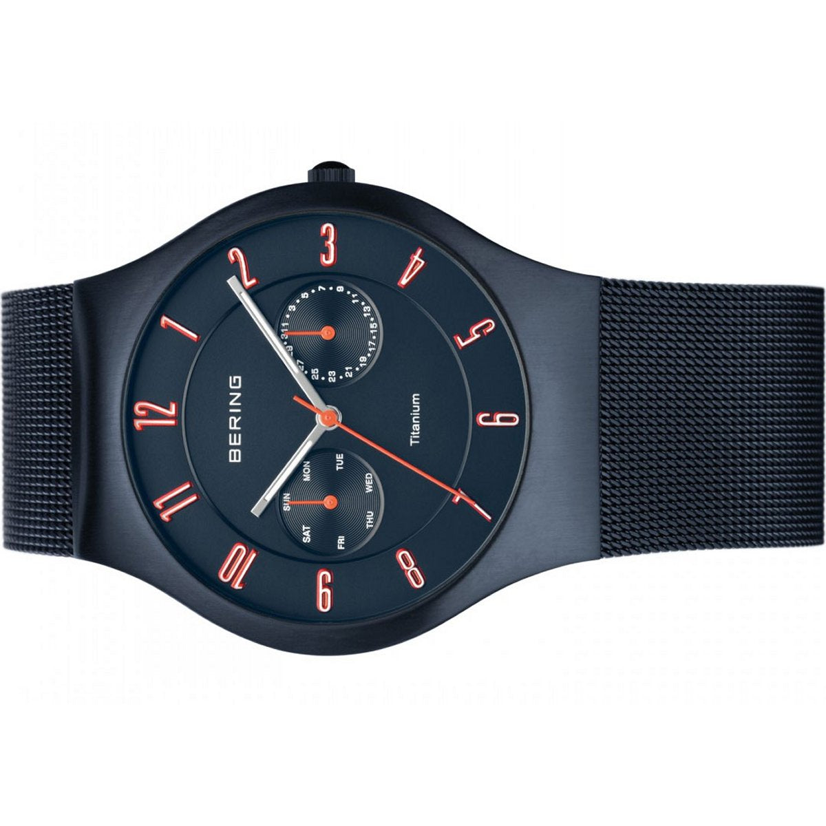 | Armband: | Edelstahl Meshband blau, Breite: ca. 2,3 cm Länge d.Uhr: 22,5 cm, Druckverschluss mit Sicherheitsbügel |