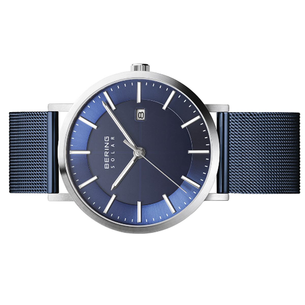 | Armband: | blaues Edelstahlarmband (Meshband), Breite: ca. 1,7 cm Länge d.Uhr: 22,5 cm, Klappschließe |