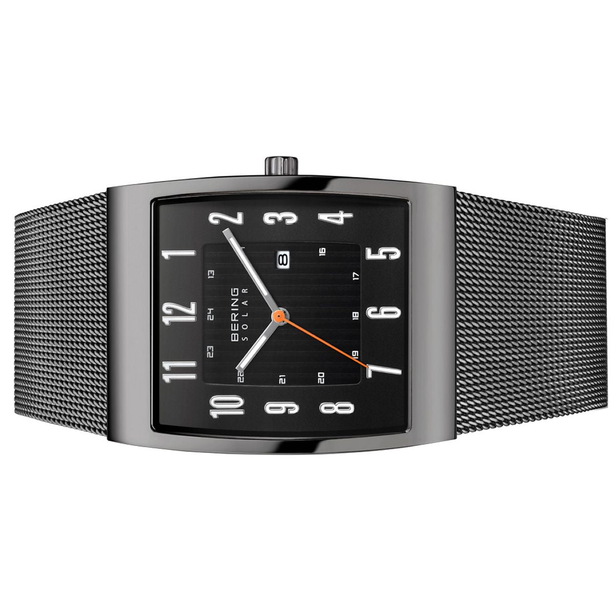 | Armband: | Edelstahlarmband (Meshband) schwarz, Breite: ca. 2,9 cm, Länge d.Uhr: 22,5 cm, Druckverschluss mit Sicherheitsbügel |