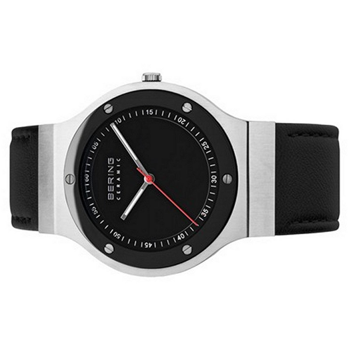 | Armband: | schwarzes Lederband, Breite: ca. 2,2 cm Länge d.Uhr: 21,5 cm, Dornschließe |