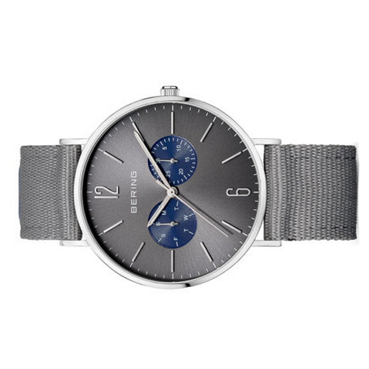 | Armband: | Nylonarmband grau, Breite: ca. 2,0 cm Länge d.Uhr: 22 ,5 cm, Dornschließe |