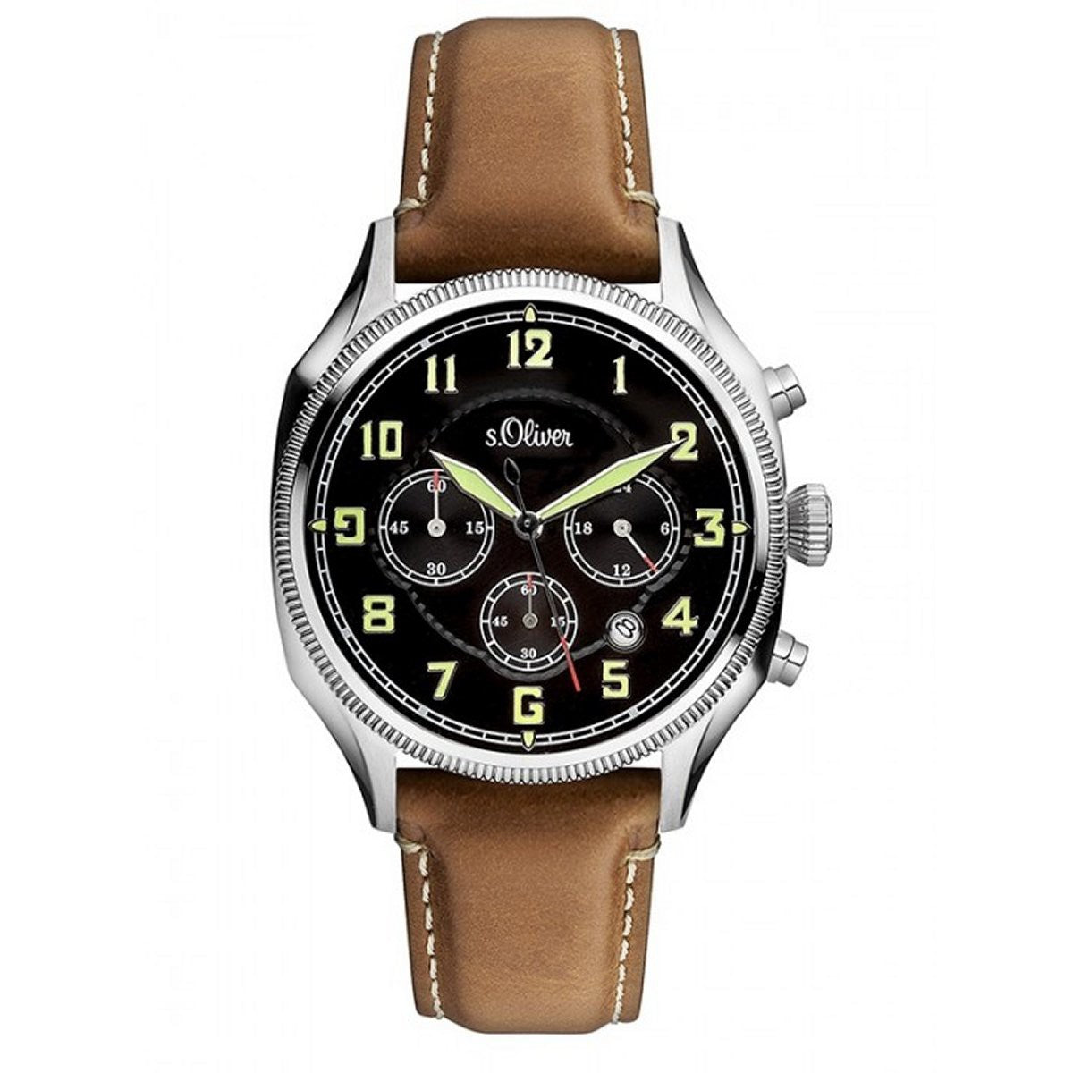 Dieser klassische Herrenchronograph aus Edelstahl mit hochwertigem Kognac-braunen Lederarmband ist der perfekte Begleiter für Freizeit und Business. Das schwarze Zifferblatt mit lumineszierenden Highlights wirkt gleichermaßen sportlich und elegant. Das Lederband bietet besten Tragekomfort, helle Kontrastnähte sorgen für einen sportlichen Touch. Neben einer Datumsanzeige hat dieser Chronograph eine Stoppfunktion, mit der man die Zeit 1/10 Sekunde bis zu einer Stunde messen kann. Ein besonderes Highlight ist die geriffelte Lünette, die zusammen mit der besonderen Gehäuseform und der Zwiebelkrone die Uhr zu einem echten Statement am Handgelenk macht.
