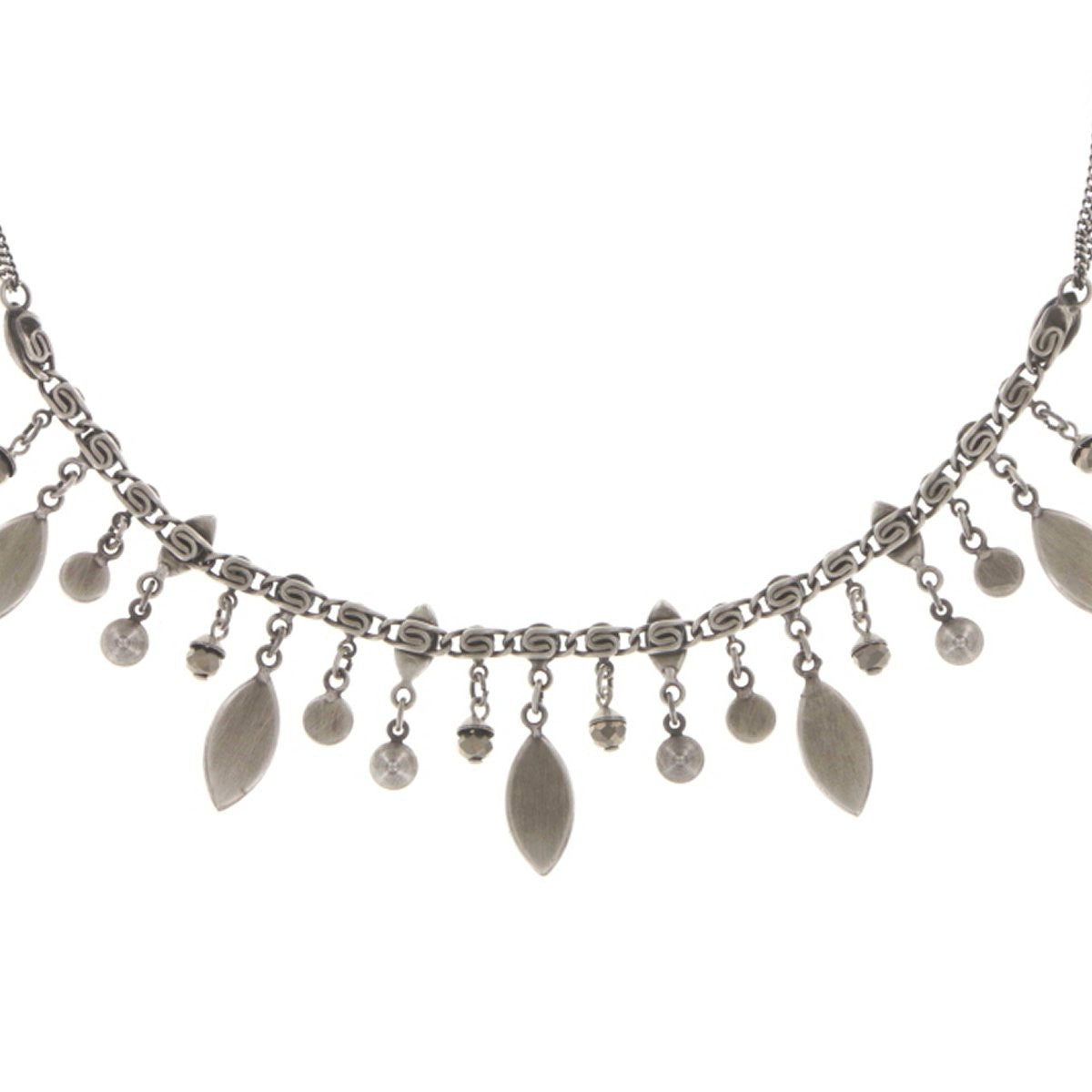 | Material: | Tombak (galvanisiert) - altsilberfarben und antiallergen, Halskette verziert mit Kristall Elements und Schmuckelementen |