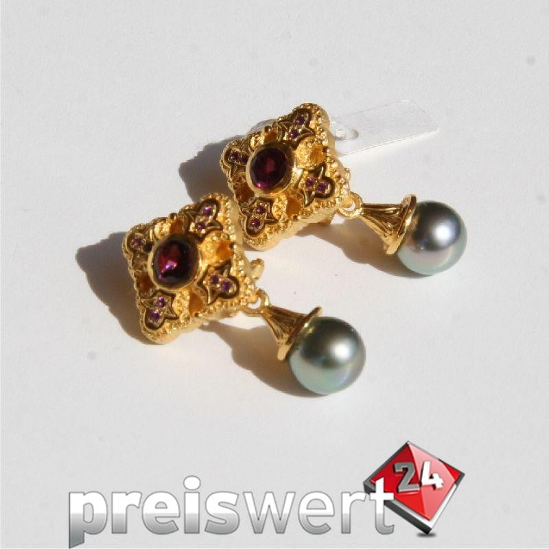 | Material: | Clipstecker : 925 Silber goldplattiert, facettiertem Tahitiperpampel und facettiertem Rhodolith |