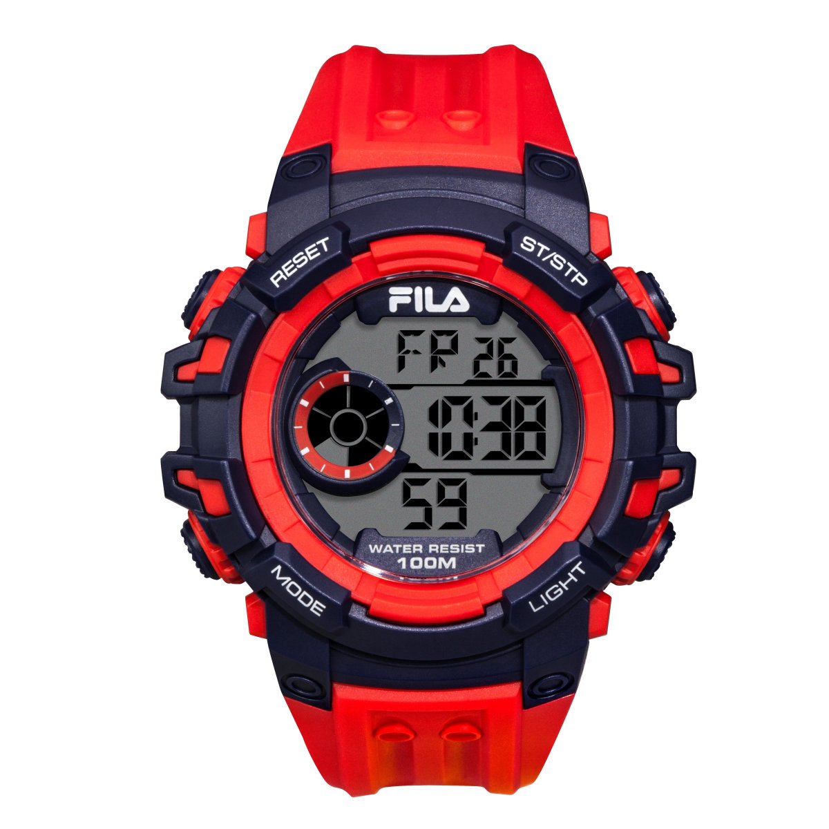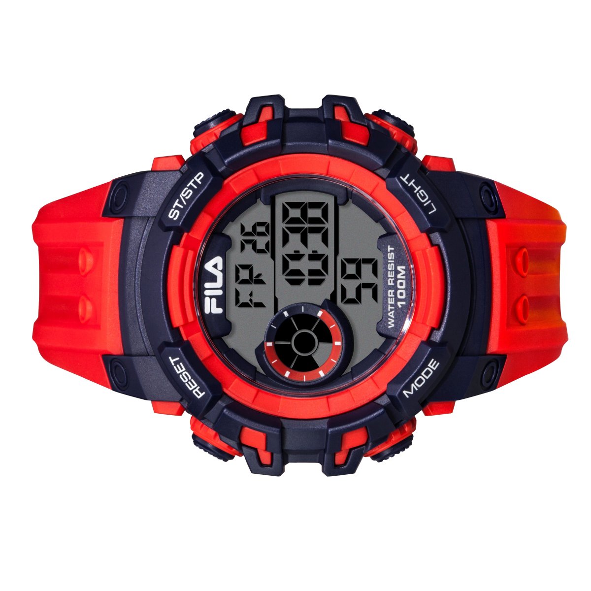 | Armband: | Silikonarmband rot, Breite: ca. 3,0 - 2,2 cm Länge der Uhr: ca. 23,0 cm Dornschließe |