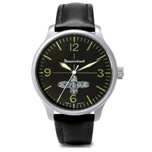 | Armband: | Lederarmband schwarz mit schwarzer Naht, Dornschließe Breite: ca. 20 mm Länge d. Uhr: ca. 23 cm |