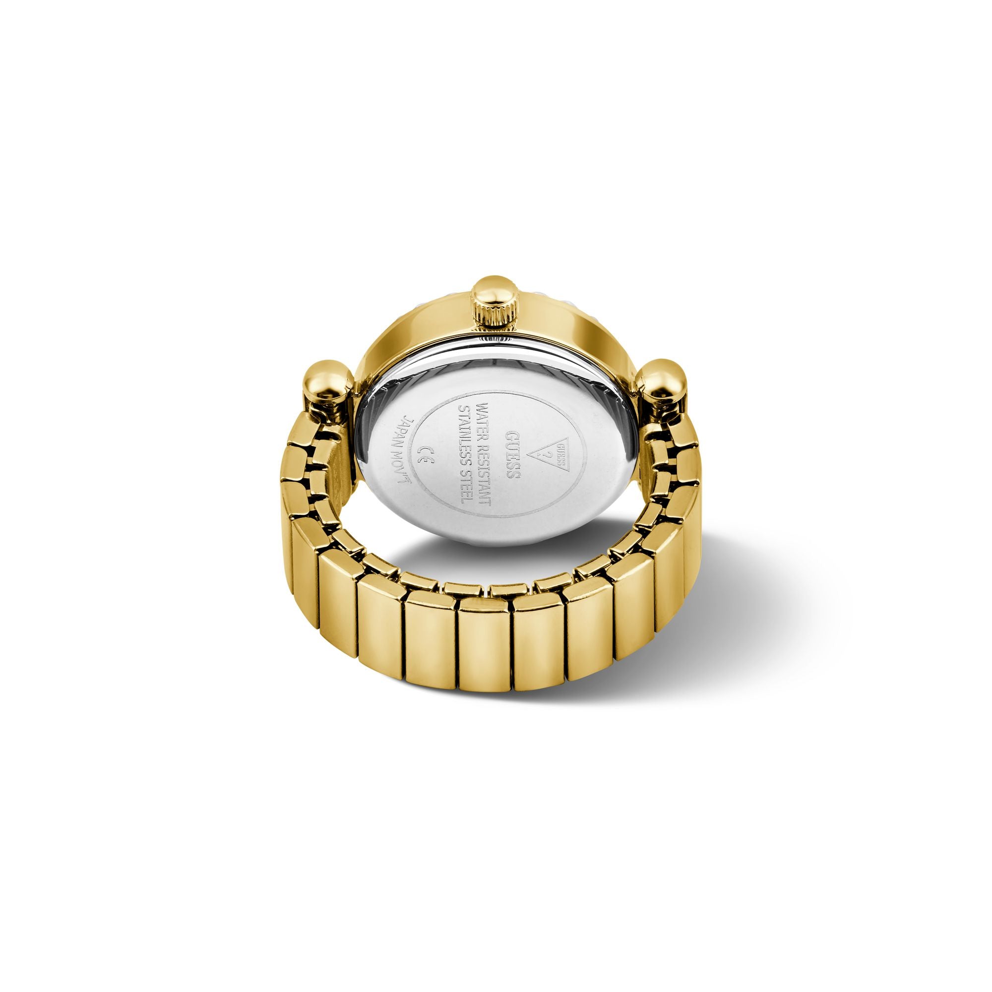 Durchmesser ca. 18,0 mm (ohne Krone), Lünette goldfarben mit weissen Steinchen bestückt, Höhe ca. 6,5  mm