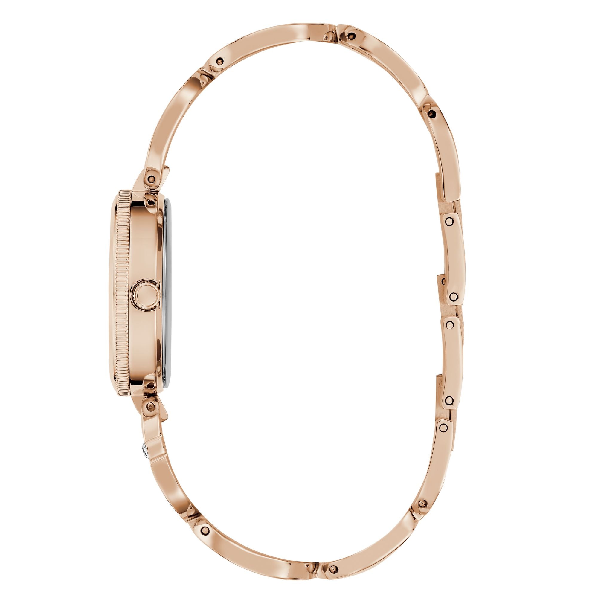 | Armband: | Edelstahlarmband rotgoldfarben , Breite: ca. 1,4 cm Länge der Uhr: ca. 19,0 cm Faltschließe |