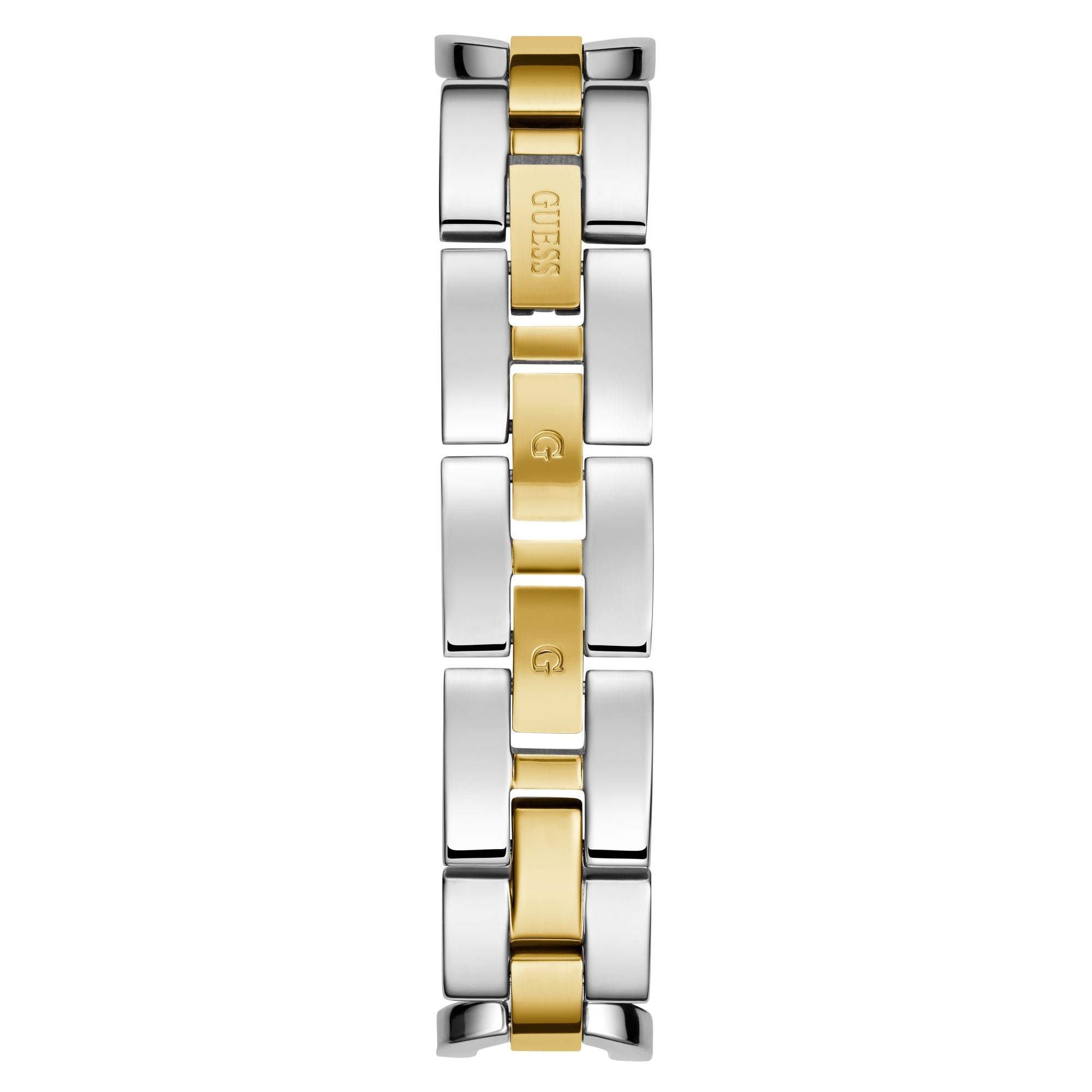 | Armband: | Edelstahlarmband bicolor Breite: ca. 1,5 cm Länge der Uhr: ca. 19,0 cm, Klappverschluss |