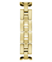 | Gehäuse: | Edelstahlgehäuse goldfarben, mit Steinchen besetzt Durchmesser ca. 22,00 mm (ohne Krone), Höhe ca. 7,45mm |