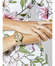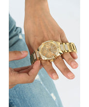 Gehäuse: Edelstahlgehäuse goldfarben, Lünette mit Steinen besetzt