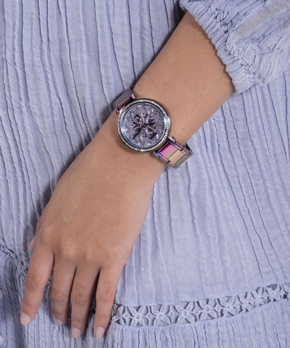 | Armband: | Edelstahlarmband Regenbogenfarben, Breite: ca. 1,8 cm Länge der Uhr: ca. 19,0 cm Faltschließe |
