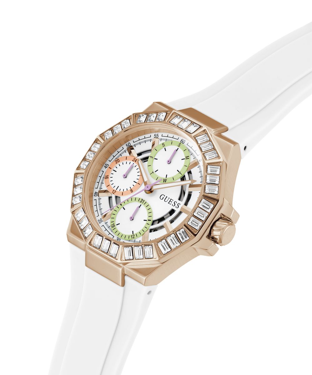 | Armband: | Silikonarmband weiß, Breite: ca. 2,4 cm Länge der Uhr: ca. 19,0 cm Dornschließe |